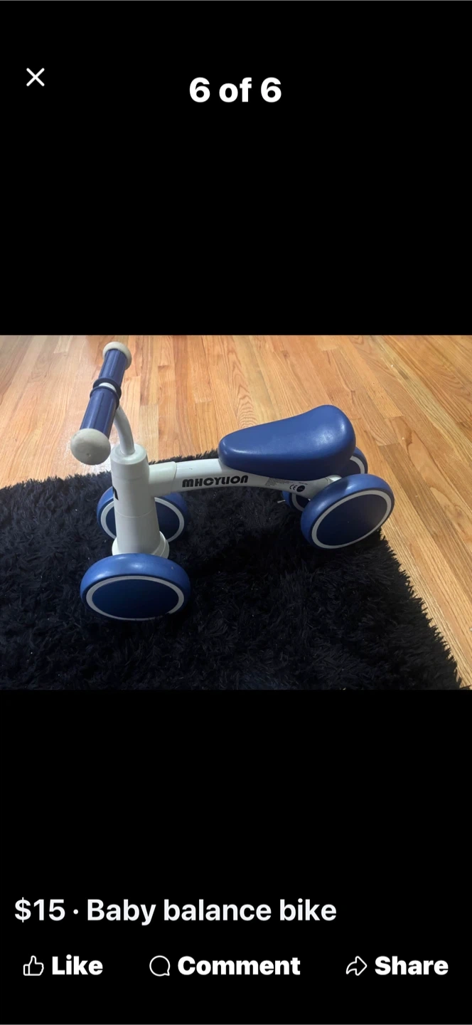 Selling a blue MHCYUON baby balance bike! It's perfect for helping your little one develop their balance and coordination. This bike is in great condition and ready for a new rider