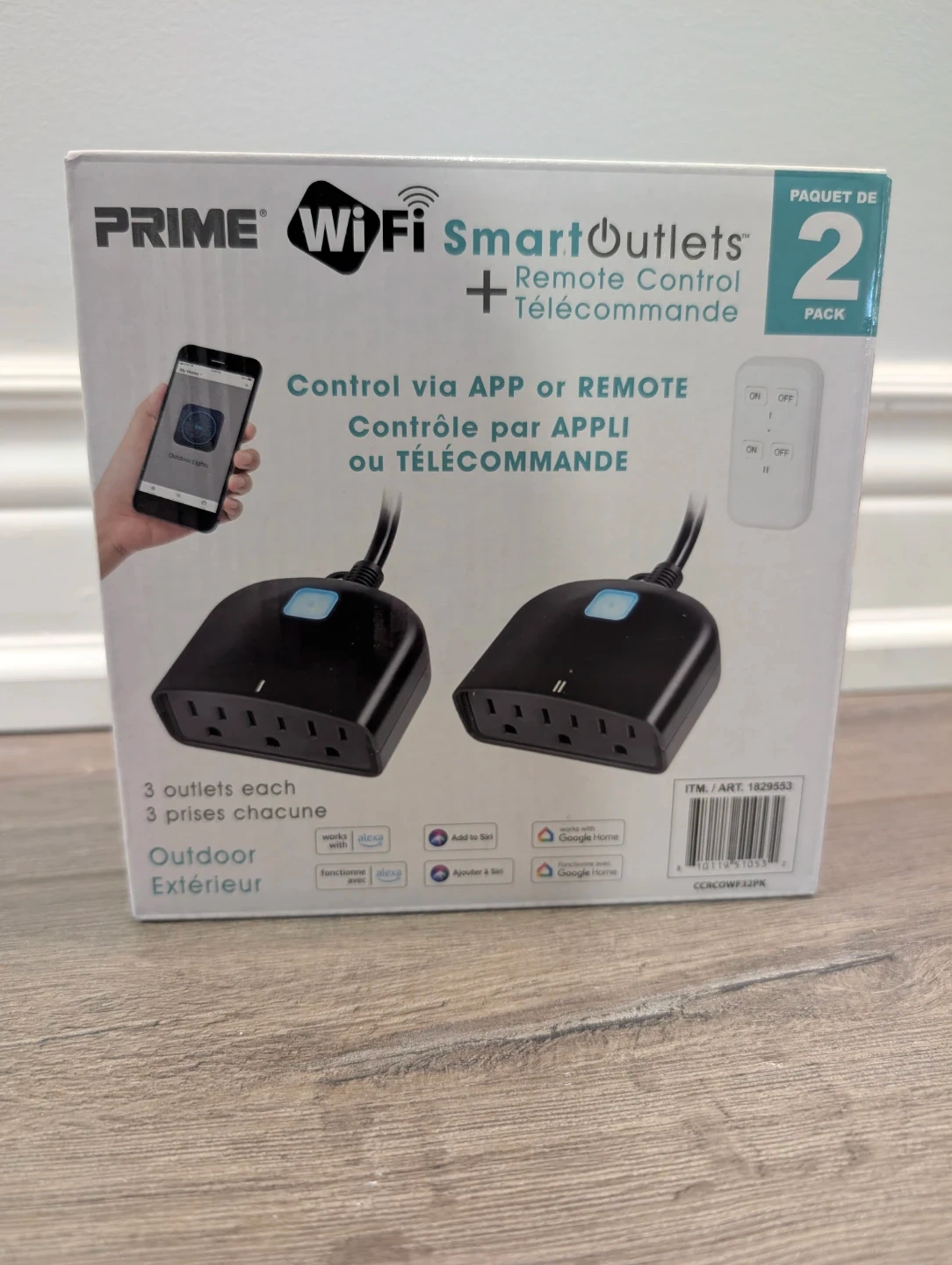 I'm selling a new PRIME WiFi Smart Outlet, 2-pack, to control your devices remotely via app or remote control. Each outlet has three sockets and is designed for indoor or outdoor use, making it perfect for your garden or patio lighting!