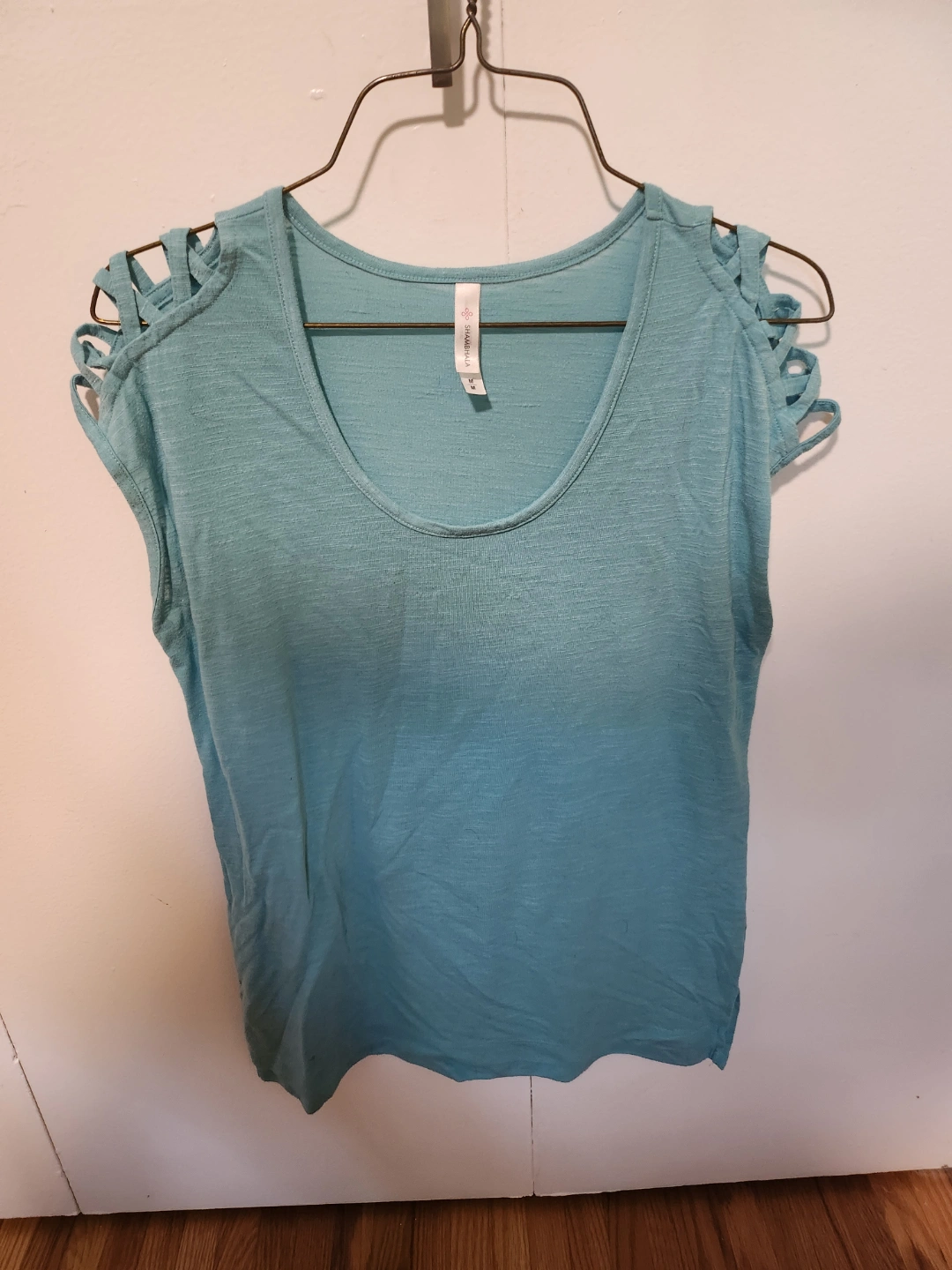 Set of two women's casual tops. Teal and black colours. Short sleeves. Cut-out shoulder detail. Lightweight fabric. Great for summer. #freecycle