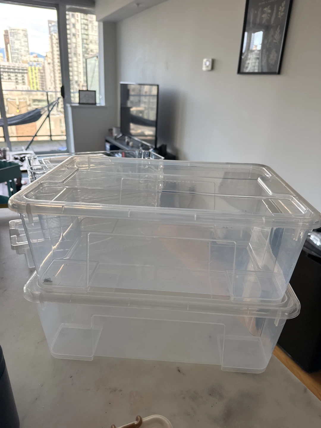 Buy & SellClear Plastic Storage Bins with LidsClear Plastic Storage Bins with Lids$25Selling clear plastic storage bins with lids! 9 bins total. 2 large, 4 medium, 1 long, 2 small.ConditionLike newWHERE TO MEETShoppersView MapSELLERVitDowntown15915 reviews0 chats·1 favorites·25 viewsSEND CHAT TO SELLERHi Vit! I’m interested in your listing.Hi Vit! I’m interested in your listing.Get the Karrot app to chatSign In to chat