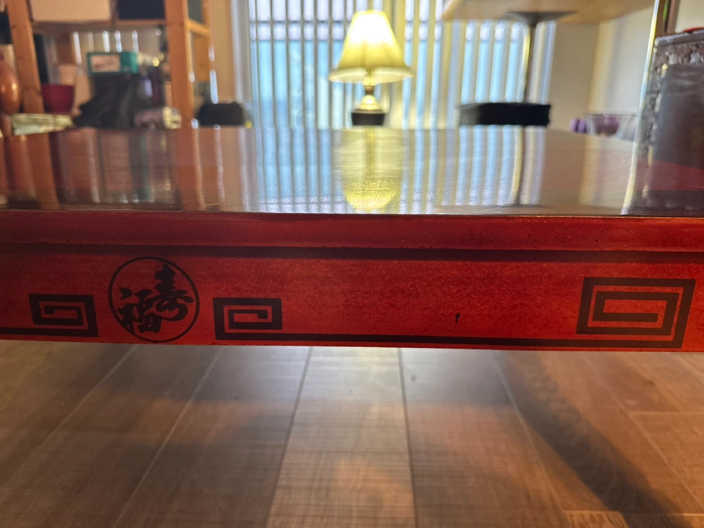 * Surface: Features a stunning, mirror-like high-gloss Ochil (natural lacquer) finish that highlights the beautiful, deep natural wood grain.