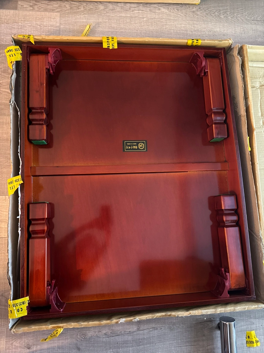 For sale is a high-end, authentic Korean traditional folding table (soban/gyojasang) from the premium brand Daehan Minyebang (대한 민예방). This table is a rare find in "new old stock" condition, having been stored in its original box for over 10 years.