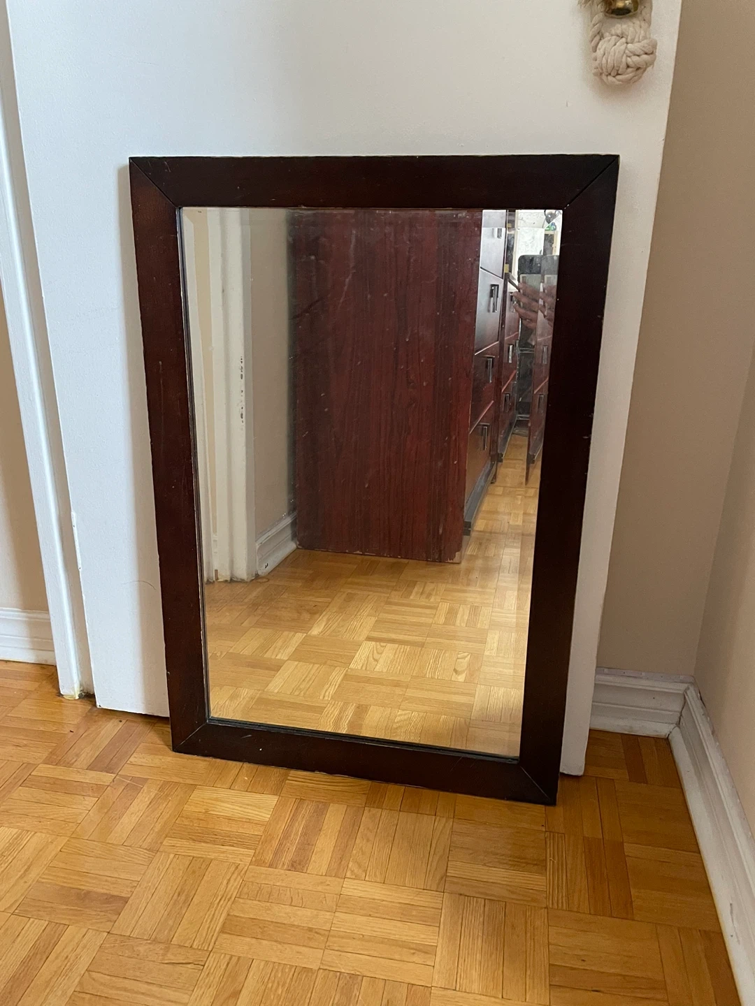 Buy & SellDark Wood Framed MirrorDark Wood Framed Mirror$15Wall mirror 22" x 32" inches, sturdy wood frame. Will clean glass before pickup to get it in pristine conditionConditionLike newWHERE TO MEETCheck LocationView MapSELLERJennaBridlewood211 review1 chats·1 favorites·38 viewsSEND CHAT TO SELLERHi Jenna! I’m interested in your listing.Hi Jenna! I’m interested in your listing.Get the Karrot app to chatSign In to chat