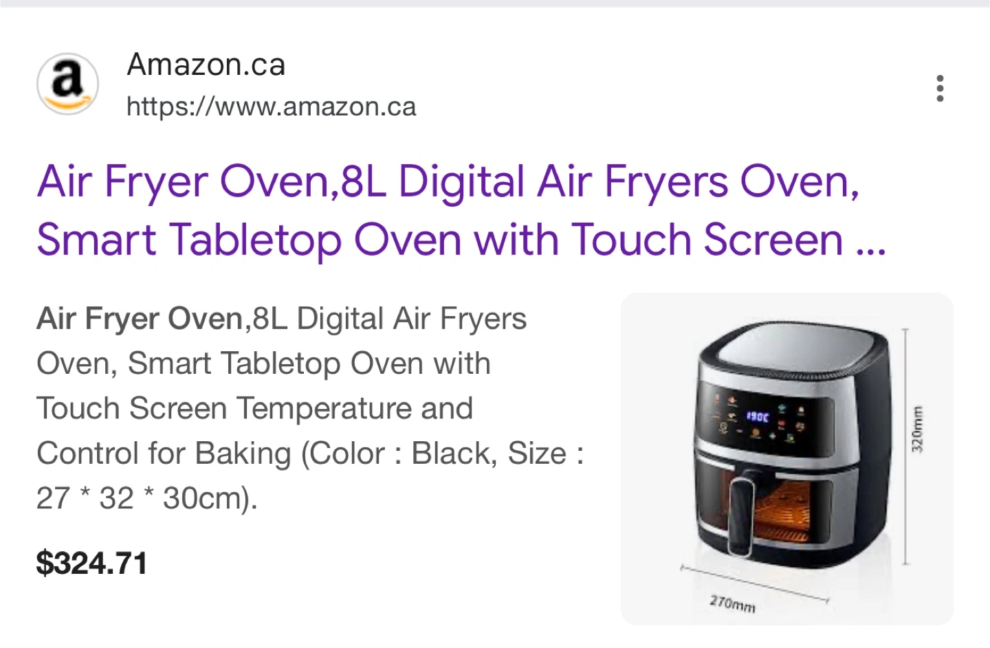 Selling a brand new, never used Air Fryer Oven with an extra-large 8L capacity! It's a digital air fryer oven with a smart tabletop design and a touchscreen for easy temperature control. The dimensions are 27 x 32 x 30cm. It's still in its original packaging with all components included
