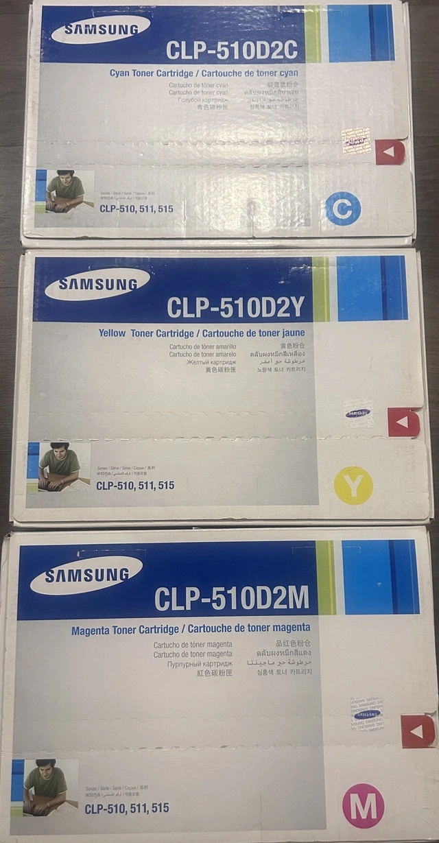 Selling 3 brand new, original Samsung CLP-510D laser toner cartridges (Cyan, Yellow, Magenta). $30 for all three. Cash or cashless payment accepted. Available for curbside pickup only.