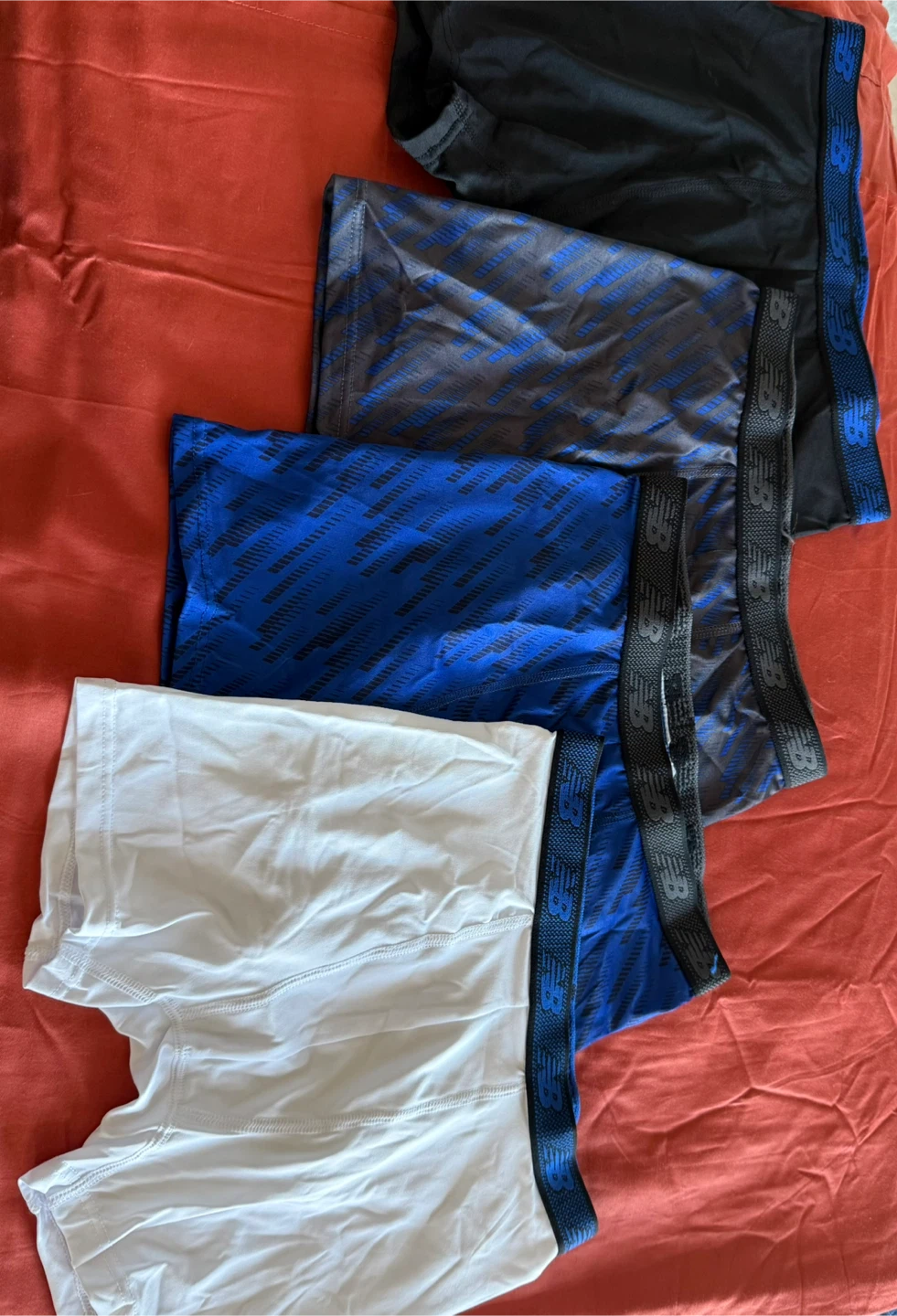 New Balance boy's premium performance boxer briefs, 4 pack, size medium. Colours include black, royal, white, and racing league. Features performance wicking and are incredibly soft and durable!