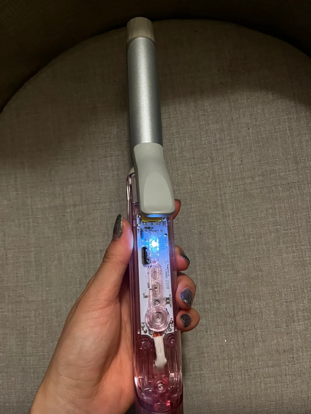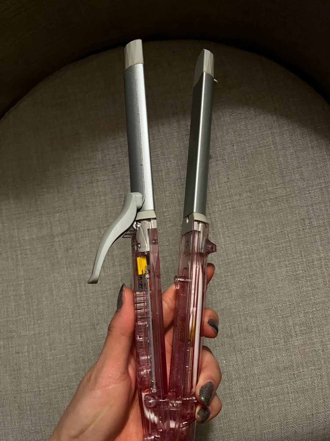 š¤It has a clear pink handle.