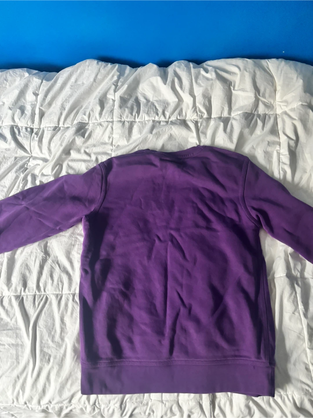 This is a Nike crewneck sweatshirt in a vibrant purple colour. It's made of a comfortable blend, perfect for everyday wear. Size is M.
