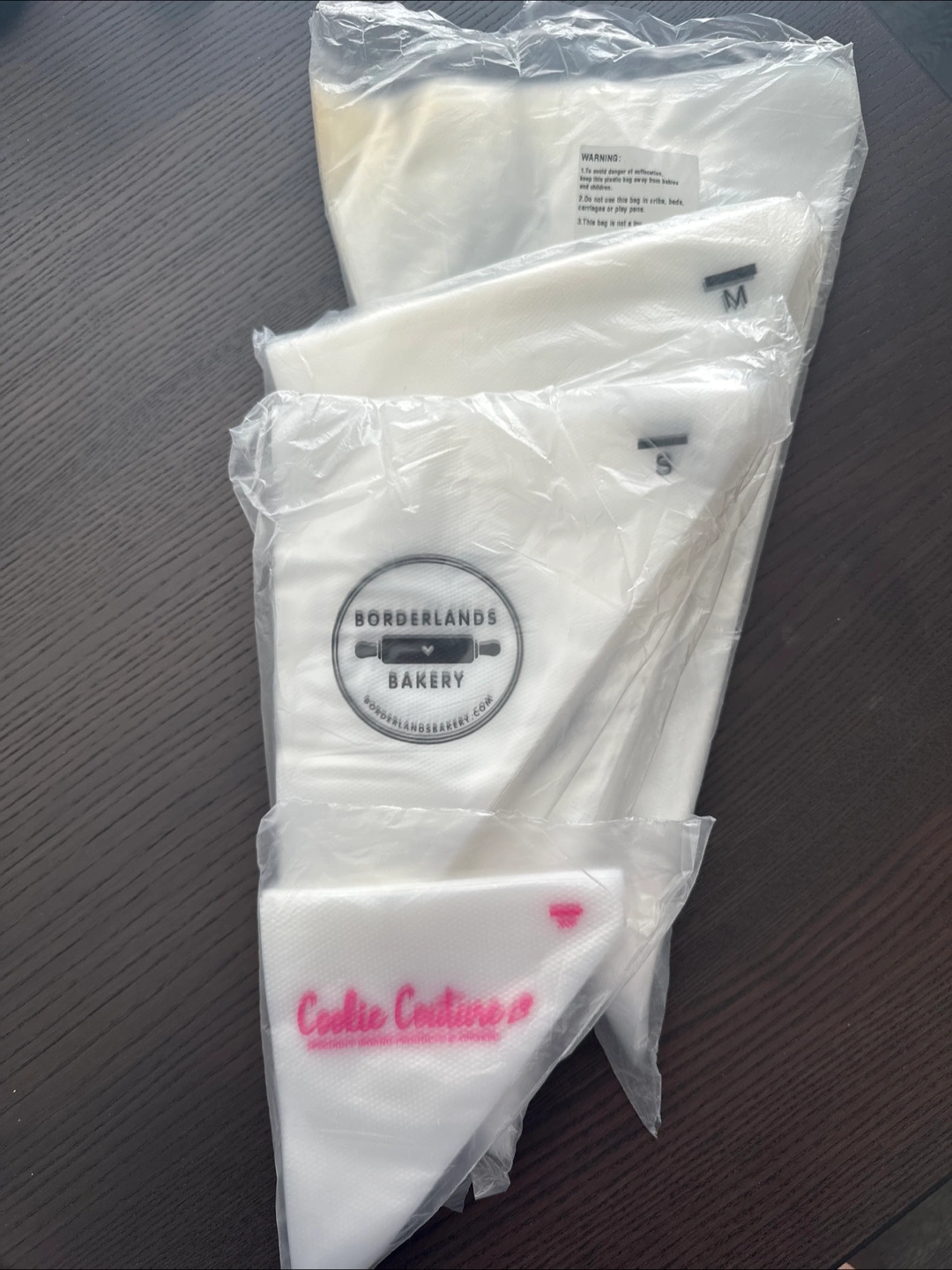Selling a variety set of piping bags, including sizes S and M, from Borderlands Bakery and Cookie Couture! Perfect for all your baking needs