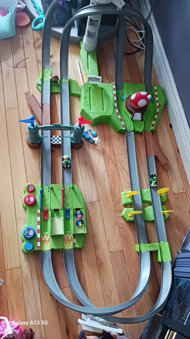 Includes: Racing track with Mario Kart cars and accessories shown in the photo.