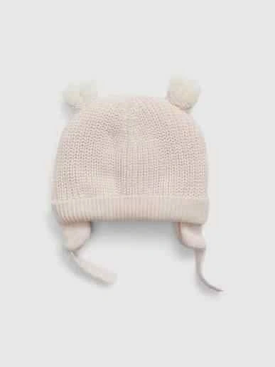 Soft cable-knit beanie with a cozy sherpa lining. Features bear ear appliques and ear flaps with a chin strap.