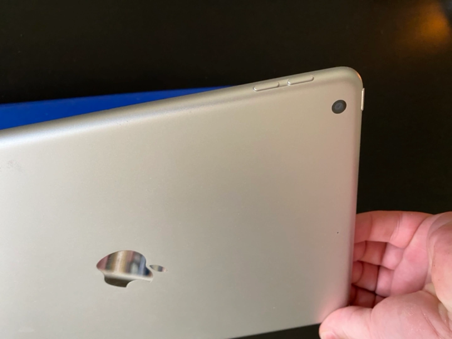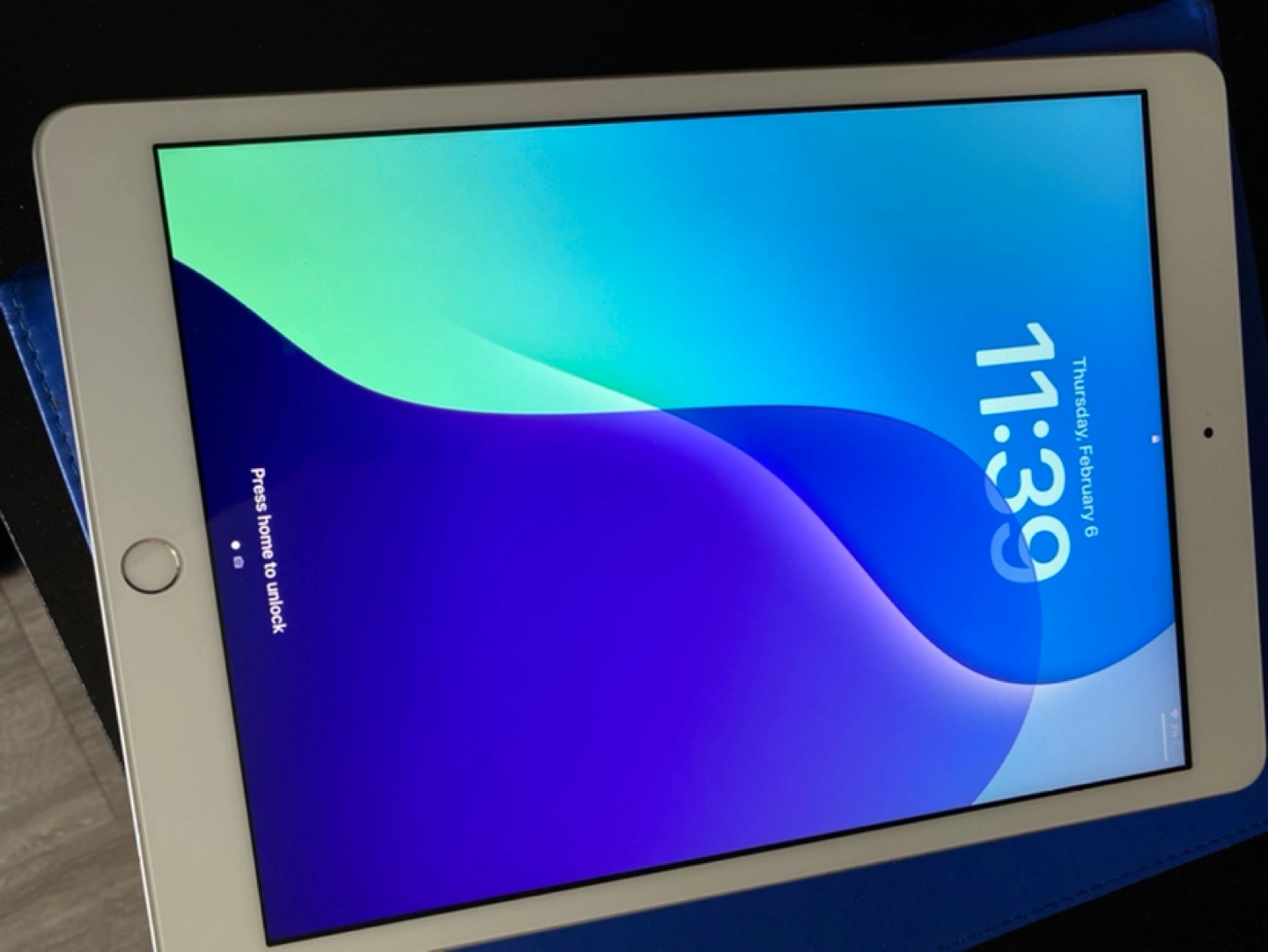 Includes: A blue portfolio-style fold-over case (slightly damaged) for free.