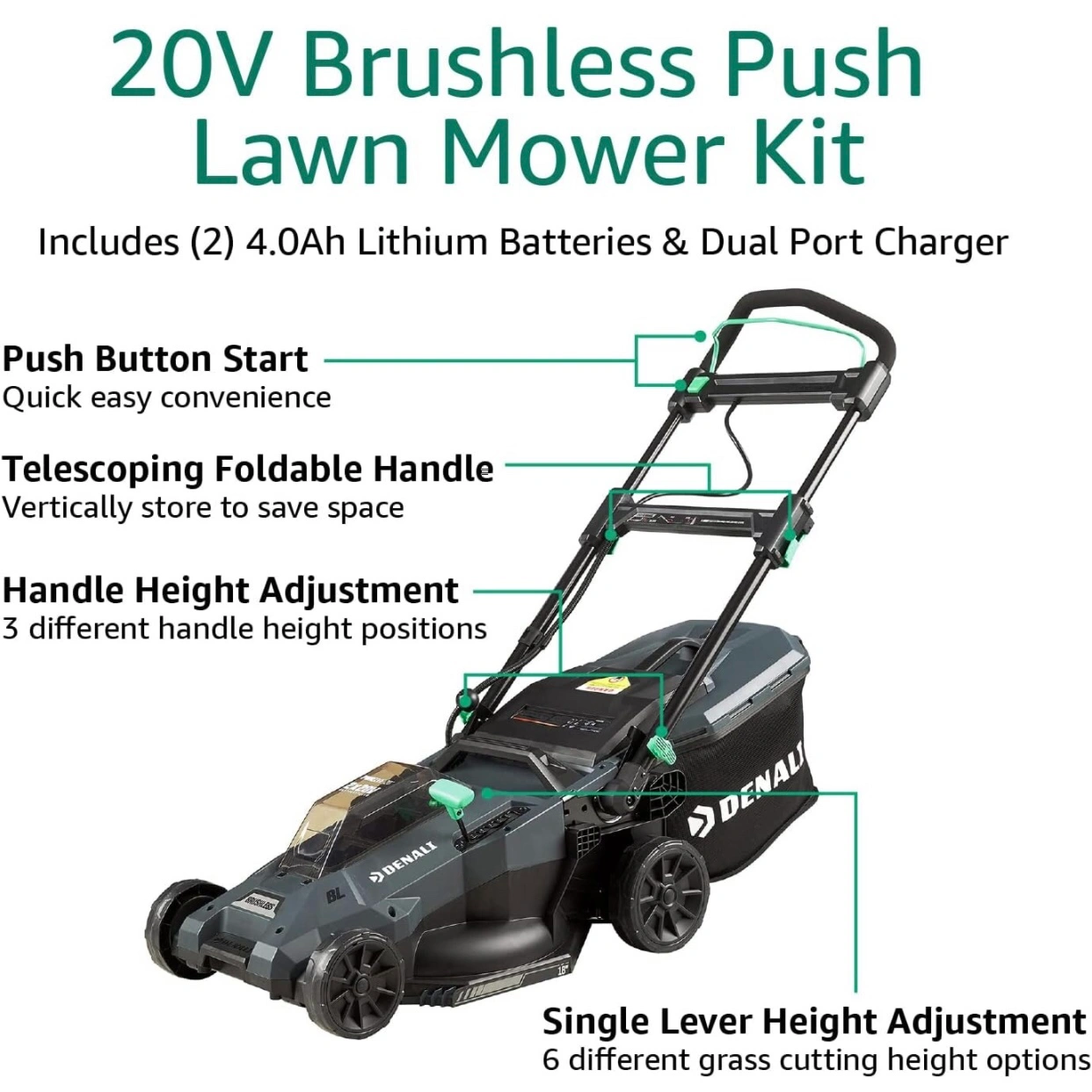 Amazon Brand - Denali by SKIL 2 x 20V (40V) Brushless 18-Inch Push Lawn Mower Kit, Includes Two 4.0 Ah Lithium Batteries & Dual Port Charger