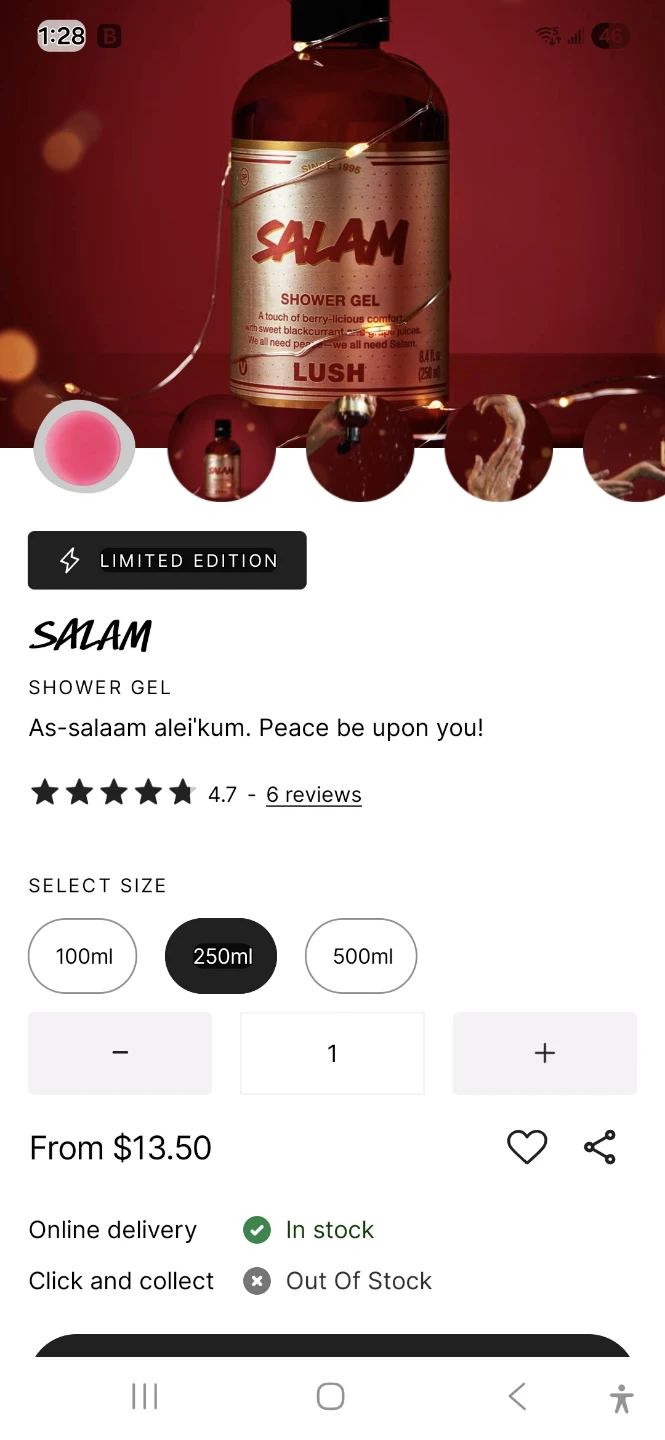 LUSH SALAM Shower Gel 250ml Limited Edition