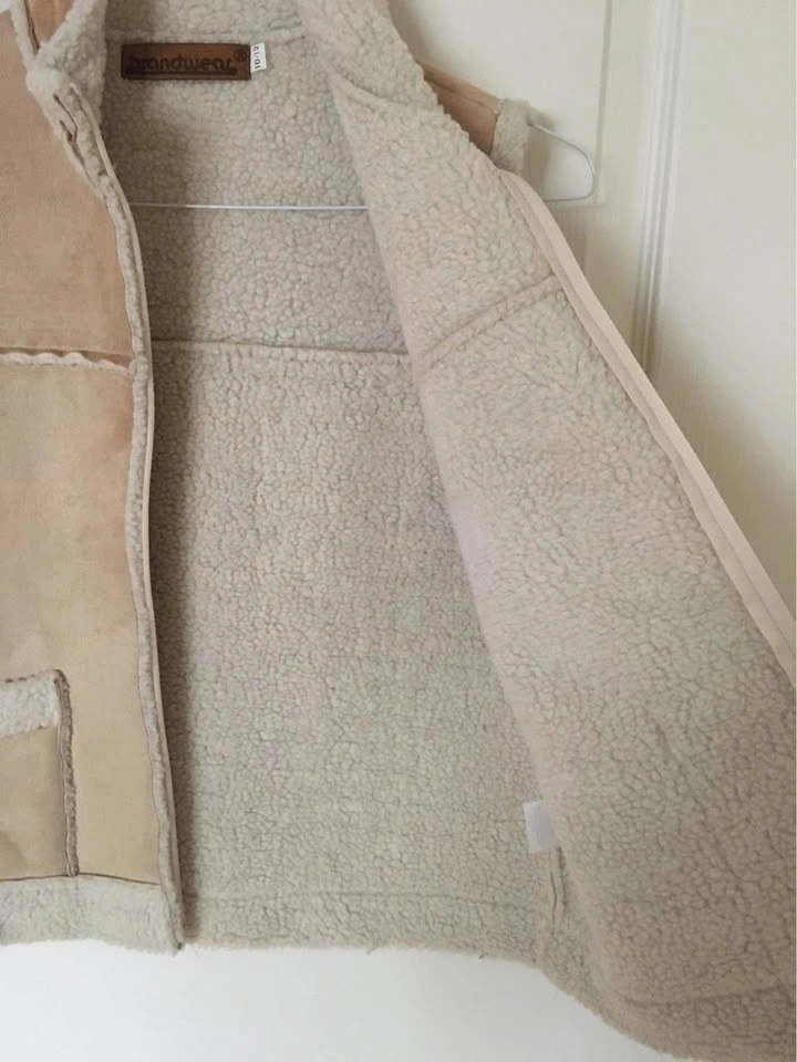 Brand New w/o Tags Beige Faux Shearling Sheepskin Small Vest. Size 10-12 youth or Women’s Small. Cozy, comfortable and warm vest. Hand Made in Canada! 🇨🇦