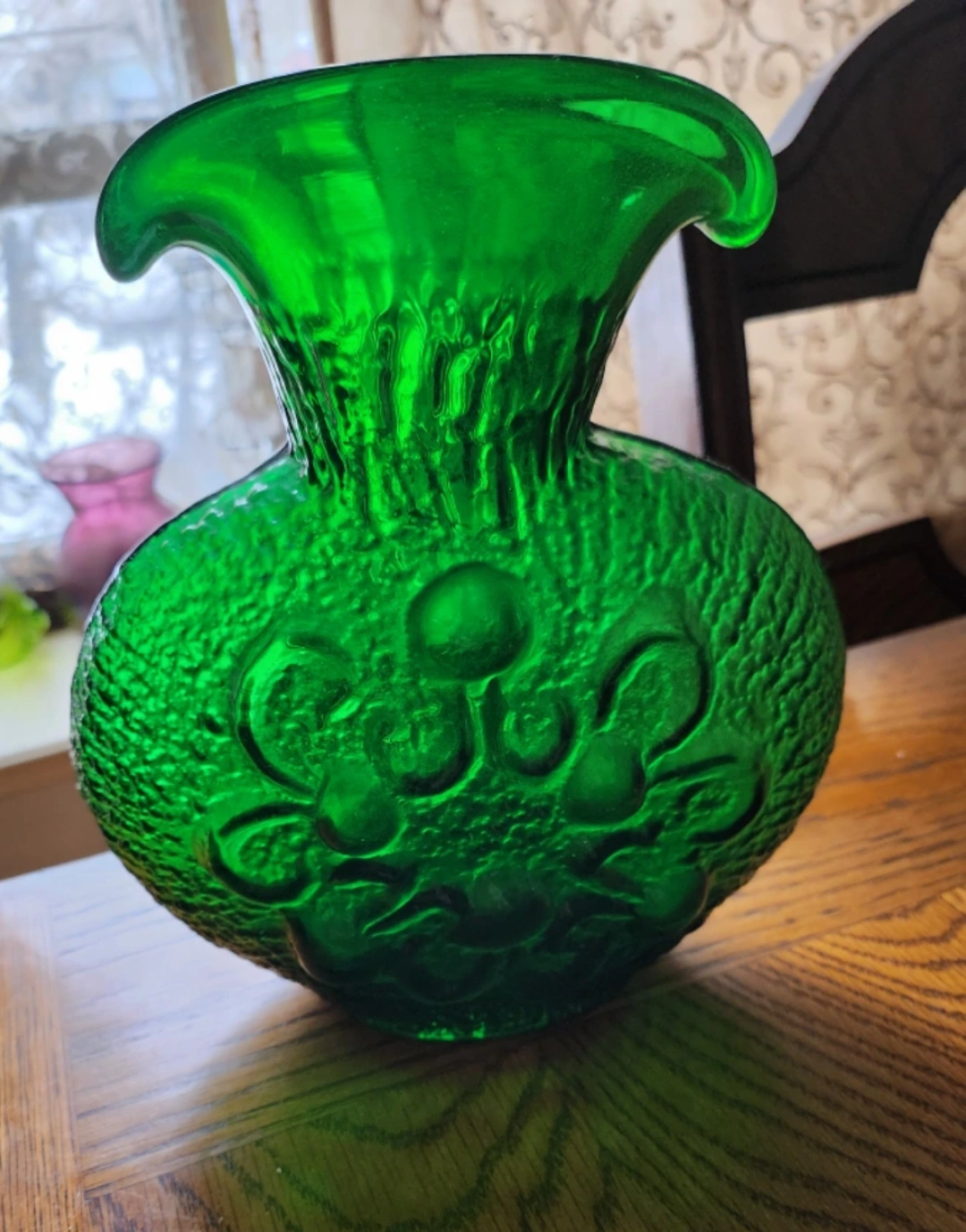 Vintage midcentury Wayne husted stelvia glass vase green pitcher