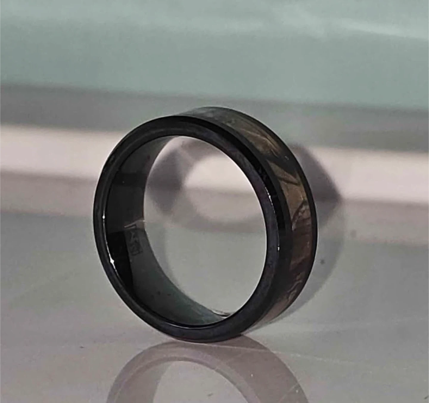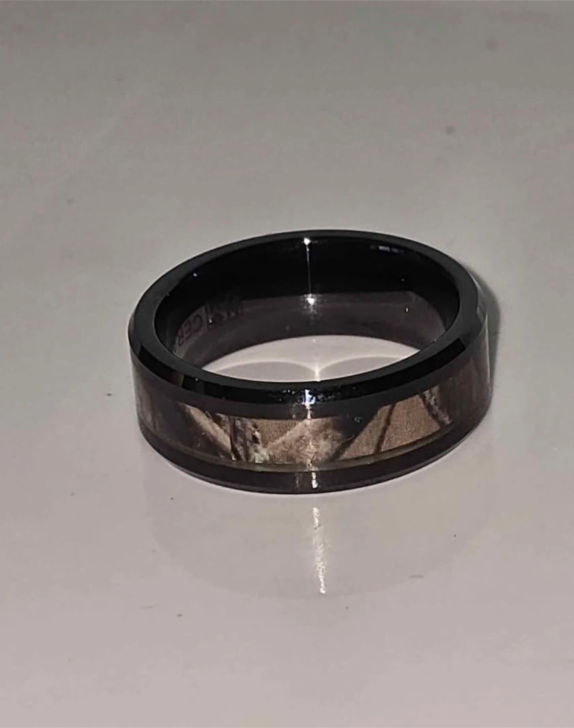 Buy & SellBlack Ceramic Ring with Camo InlayBlack Ceramic Ring with Camo Inlay$30This black ceramic ring features a cool camouflage inlay. It's designed for durability and a unique look.Size8WHERE TO MEETOrilliaView MapSELLERTracyOrillia1207 reviews0 chats·0 favorites·21 viewsSEND CHAT TO SELLERHi Tracy! I’m interested in your listing.Hi Tracy! I’m interested in your listing.Get the Karrot app to chatSign In to chat