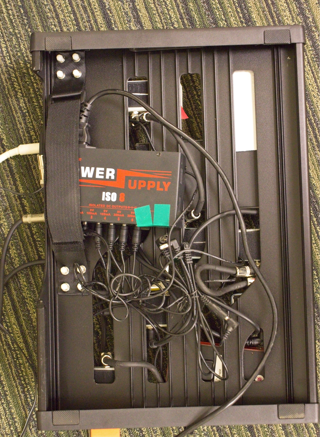 DC POWER SUPPLY, 8 OUTLETS, DAISY CHAIN CABLE, MOUNTS TO BOTTOM OF PEDAL BOARD, NO BATTERIES NEEDED