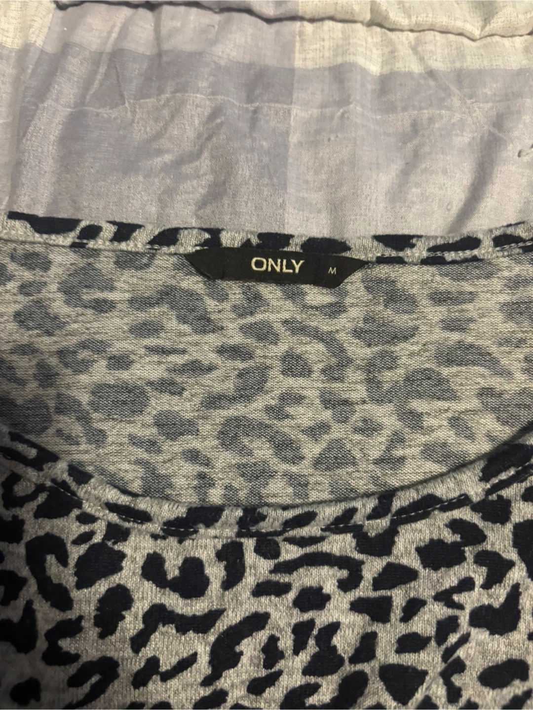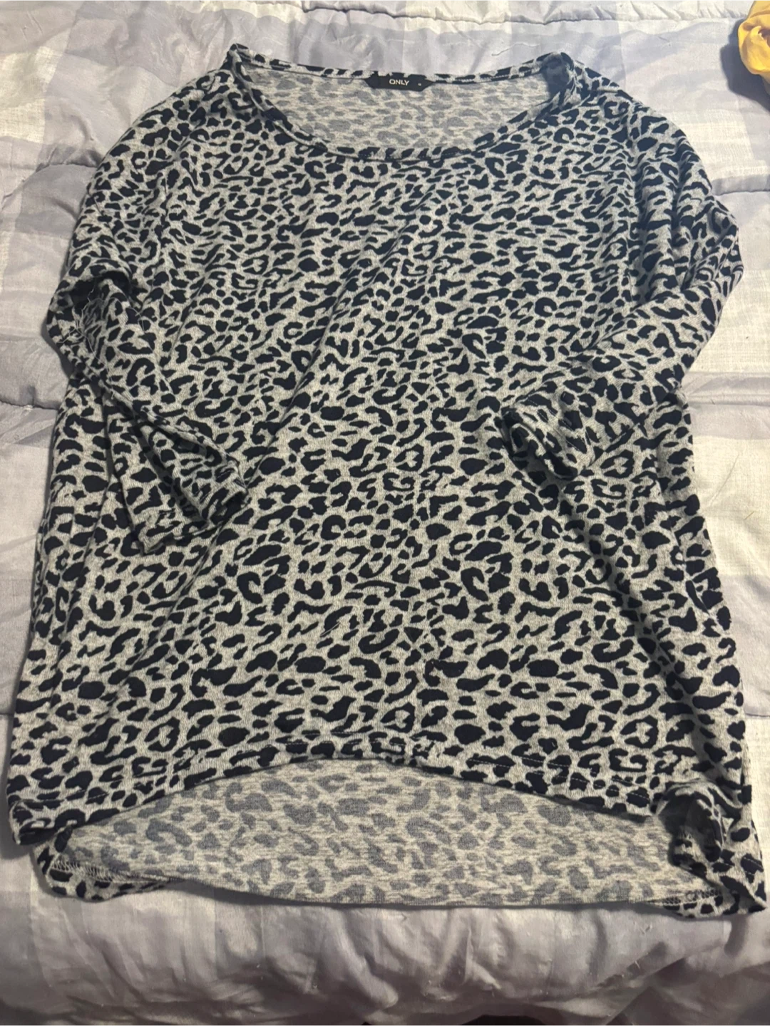 ONLY long-sleeve top with a leopard print pattern. It's a size medium. Great for layering or wearing on its own!