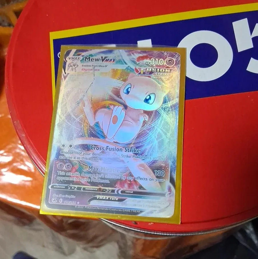 This is a 2022 Mew VMAX card from the Fusion Strike set. It has 310 HP and the attack Cross Fusion Strike. The card's number is 6974260. This card is great for collectors!