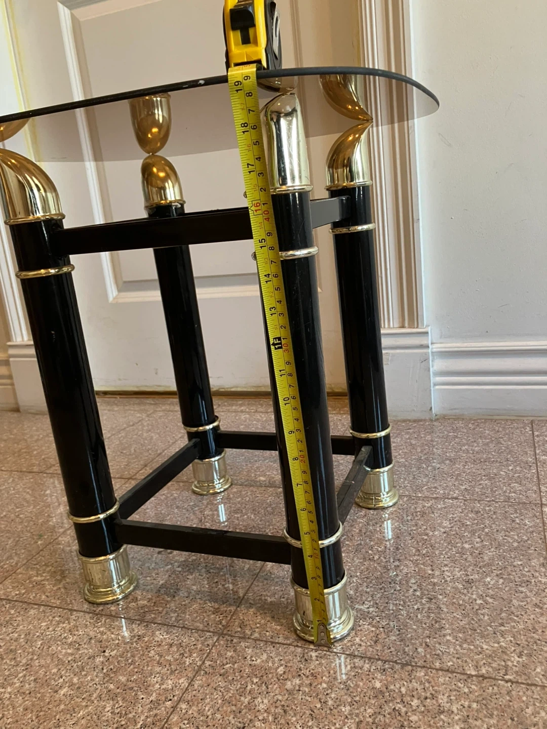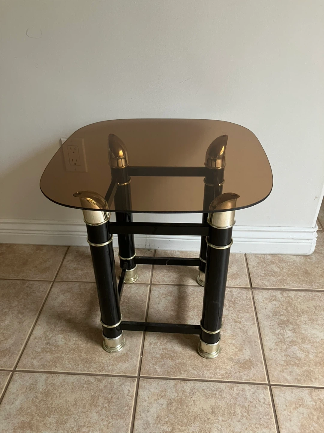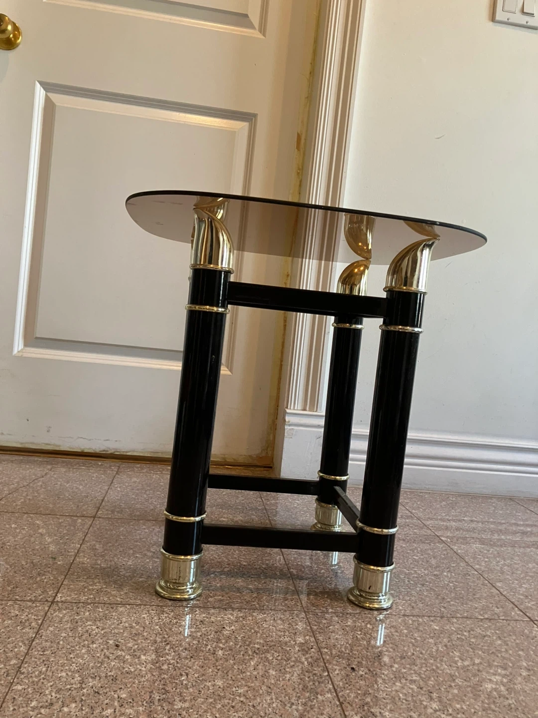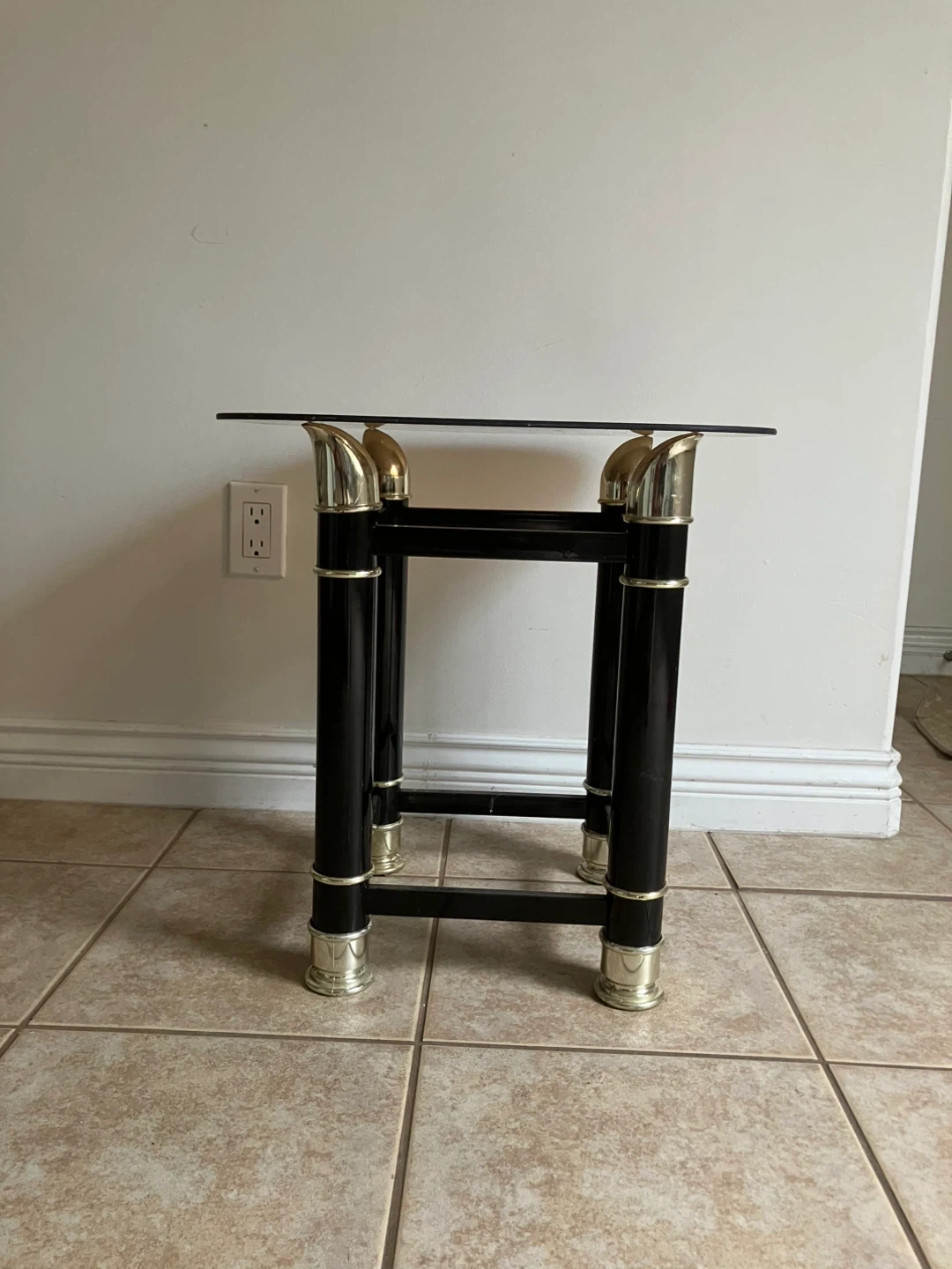 Glass Top Side Table with Black and Gold Accents