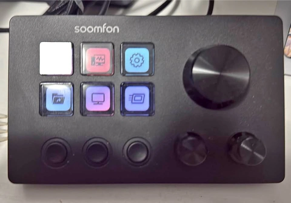 Selling a SOOMFON stream controller / macro pad, perfect for streamers, editors, or anyone who wants quick shortcuts for their PC setup. Features: Programmable LCD buttons for custom shortcuts and macros, large control knob for volume or other adjustments, multiple rotary knobs and buttons for extra controls. Great for streaming, video editing, music control, OBS, or productivity. Customizable button icons and functions. Works great for controlling apps, switching scenes, launching programs, and speeding up your workflow.
