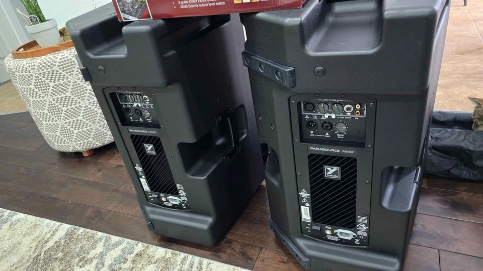 Pair of Yorkville powered Parasource speakers, PS12P (12-inch woofers, 1400 watts program each, 4400 peak). Super loud with clean sound and amazing bass, almost no need for subs. New condition as seen in pics, not a single scratch.