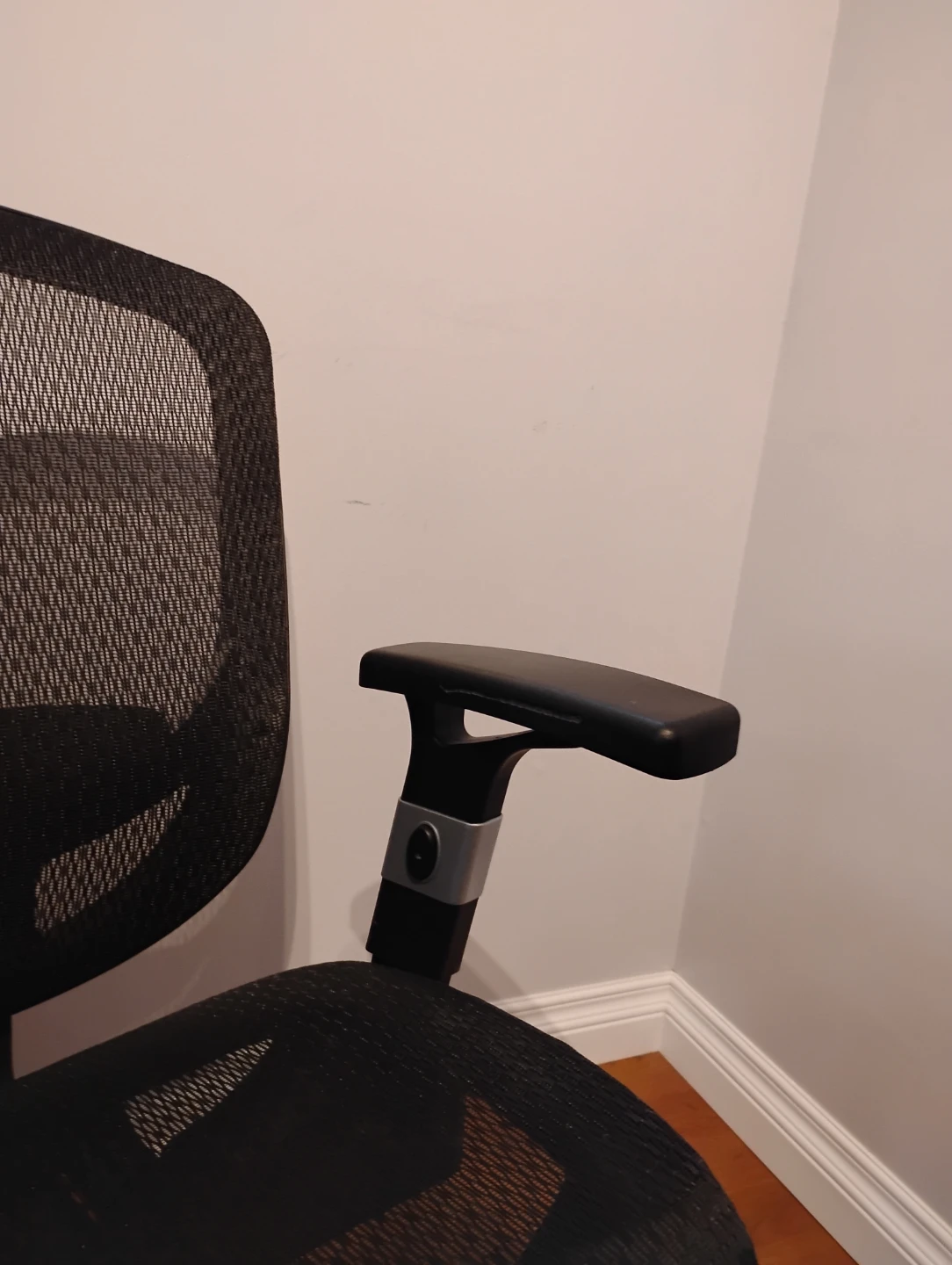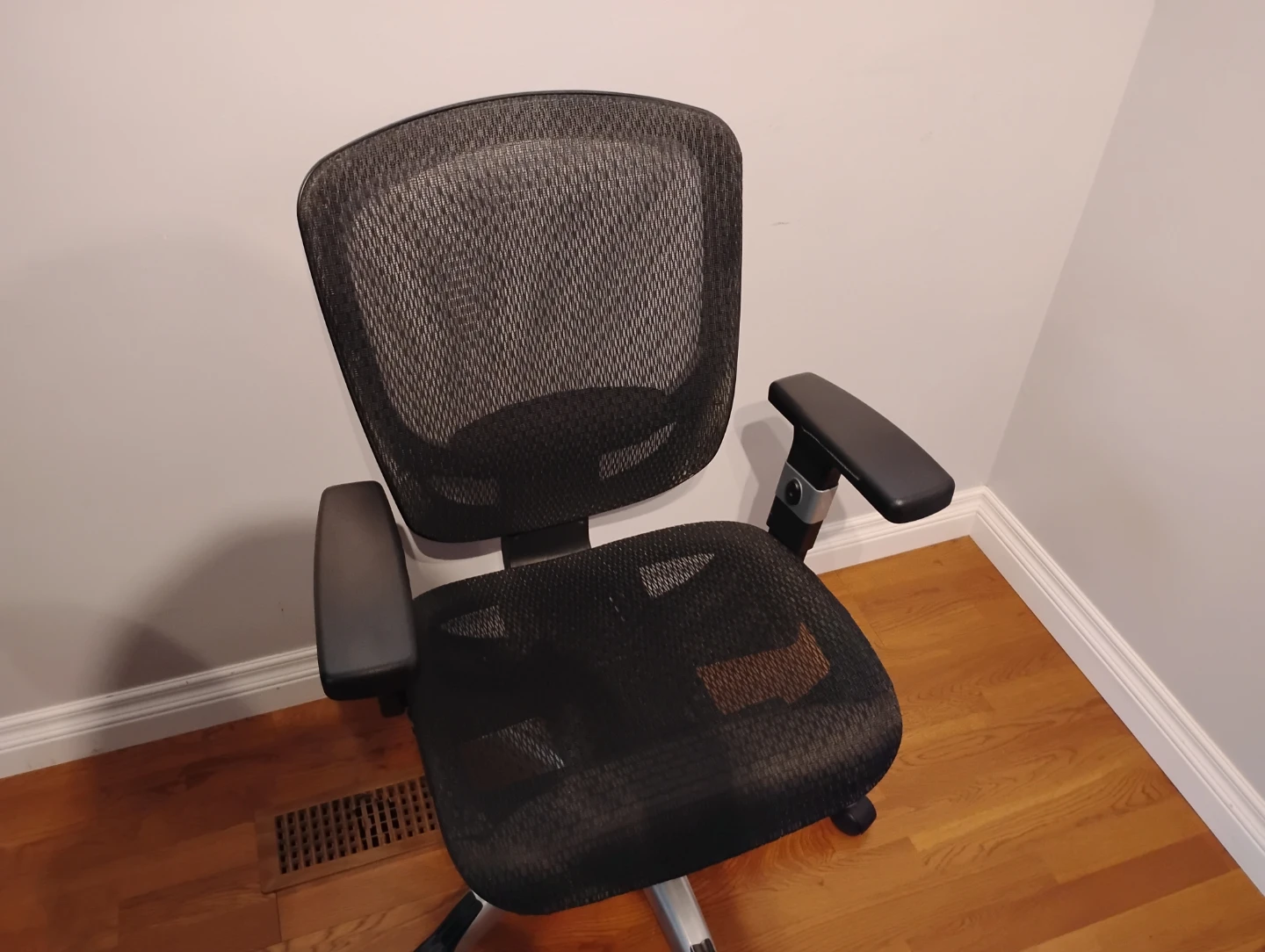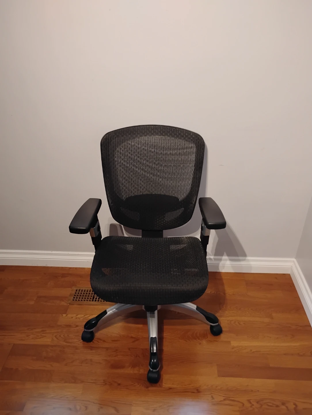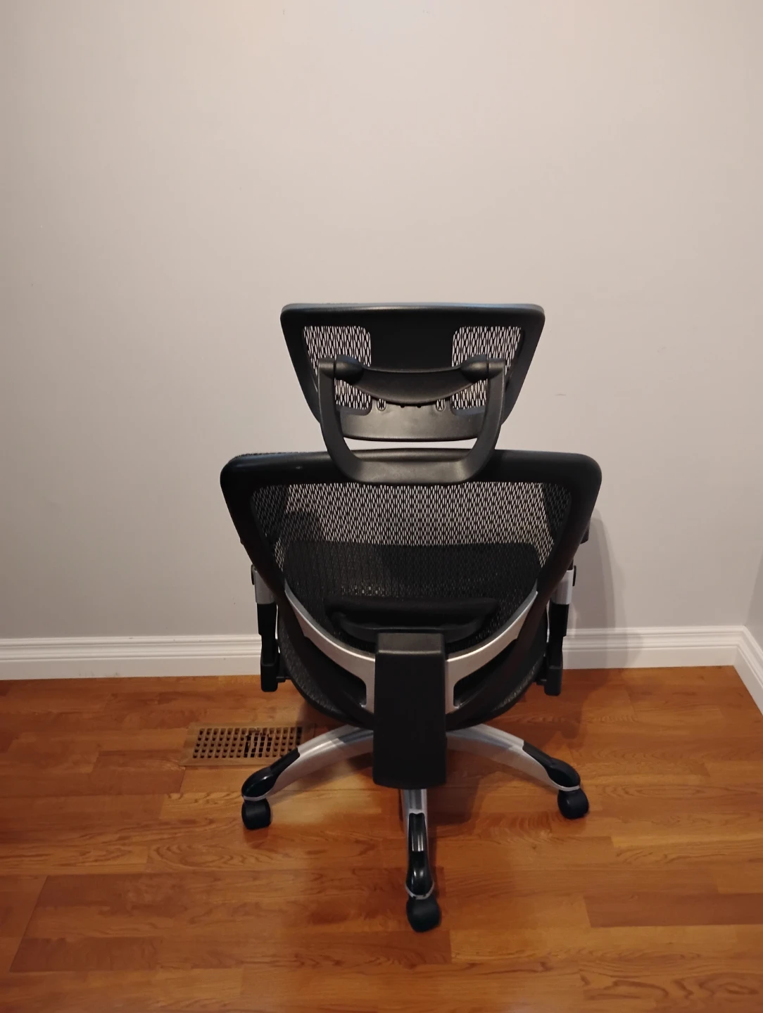 Selling an office chair in excellent condition! Elevating levels Reclining spine Arm rests are adjustable too Removable and adjustable neck brace Wheels work great! Mesh is great! Minor cosmetic wear on inside of arm rests