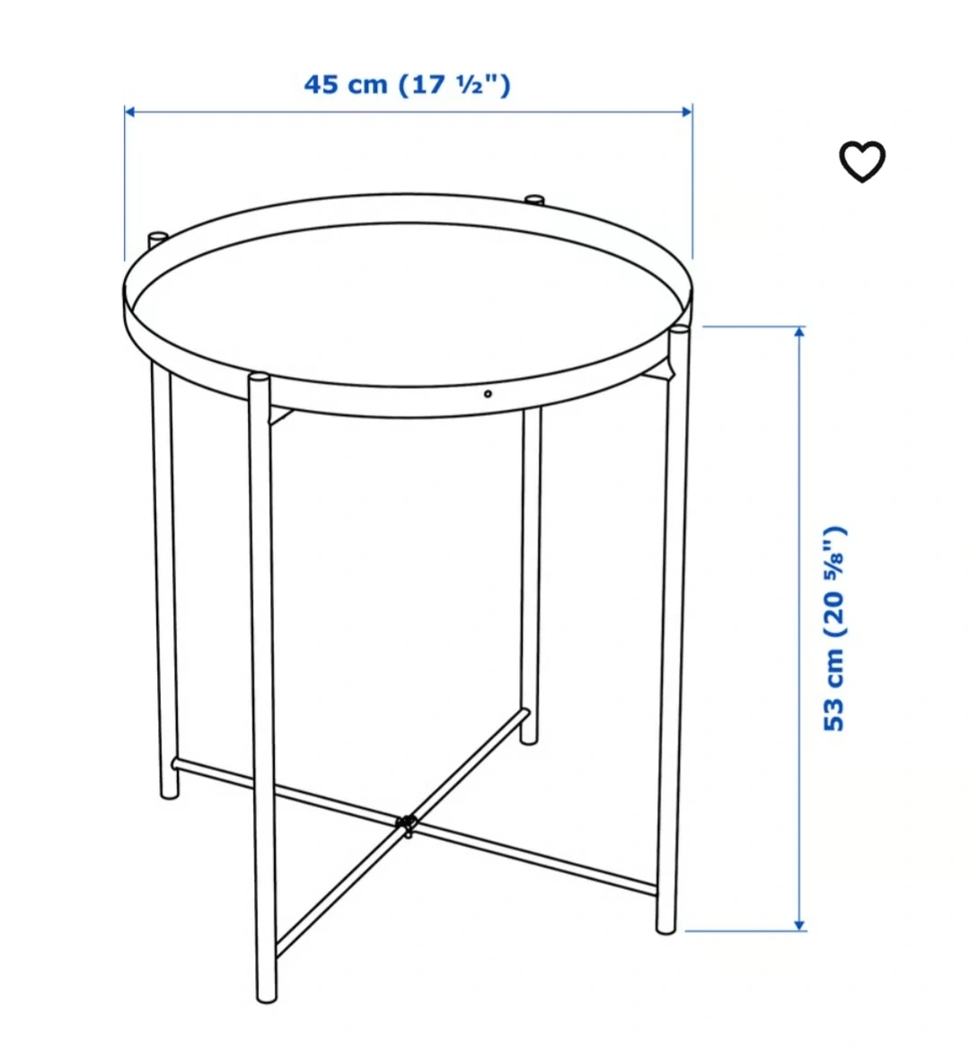 A handy side table with a removable tray top. It's perfect for placing drinks or snacks next to a sofa or chair. Measures 45 cm (17 1/2") in diameter and 53 cm (20 5/8") high.