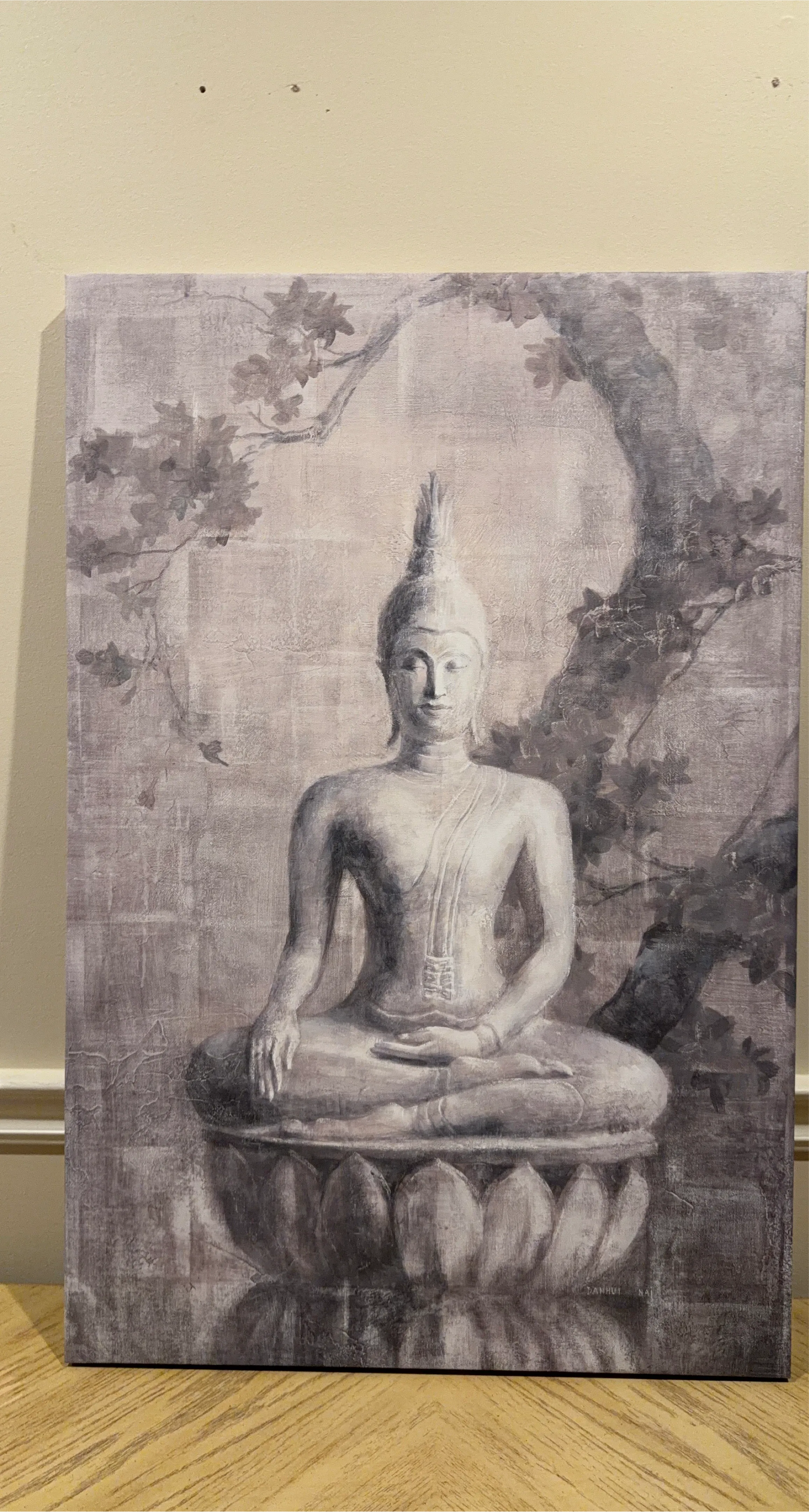 a canvas print featuring a Buddha image. It's in great shape and would be a lovely addition to any room!