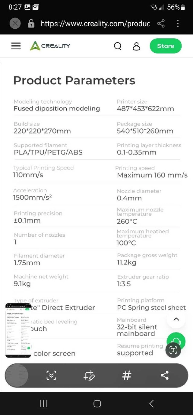 Selling a Creality Ender-3 S1 Pro 3D printer. It's in used, like-new condition and fully functional. This printer uses fused deposition modeling, has a build size of 220x220x270mm, and supports filaments like PLA, TPU, PETG, and ABS. It features a Sprite direct extruder and CR Touch automatic bed leveling. The printing platform is a PC spring steel sheet. We originally bought it for my son and it has never been used. It comes with headphones and three unused rolls of filament (originally purchased for $45, $69, and $33). Asking $350 OBO for the printer, or $450 OBO with the filament rolls. If you're seeing this ad, it's still available!