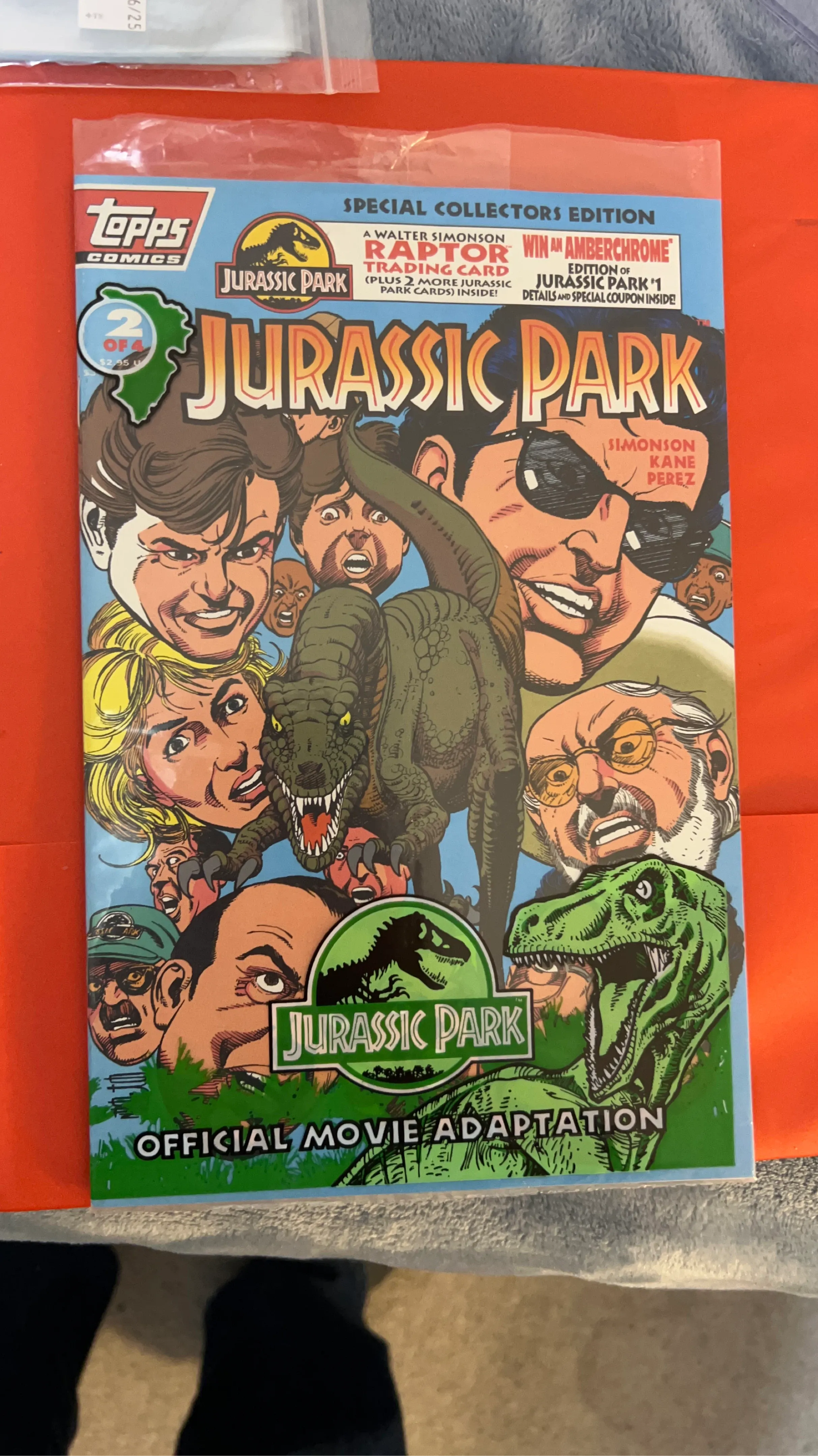 This is Topps Comics Jurassic Park Official Movie Adaptation issue number 2 of 4 and includes 3 Walter Simonson Raptor trading cards
