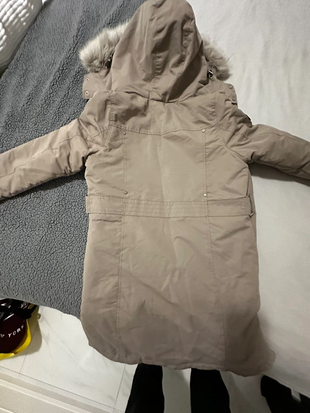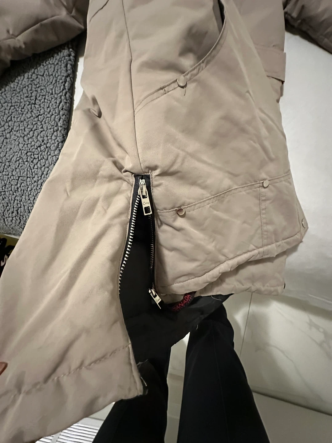 Barely used, never washed, This Canada weather gear is designed for cold weather, rated for -20°C. It features a coyote fur-trimmed hood and a durable exterior. It's a great choice for staying warm during chilly months! Originally $400.
