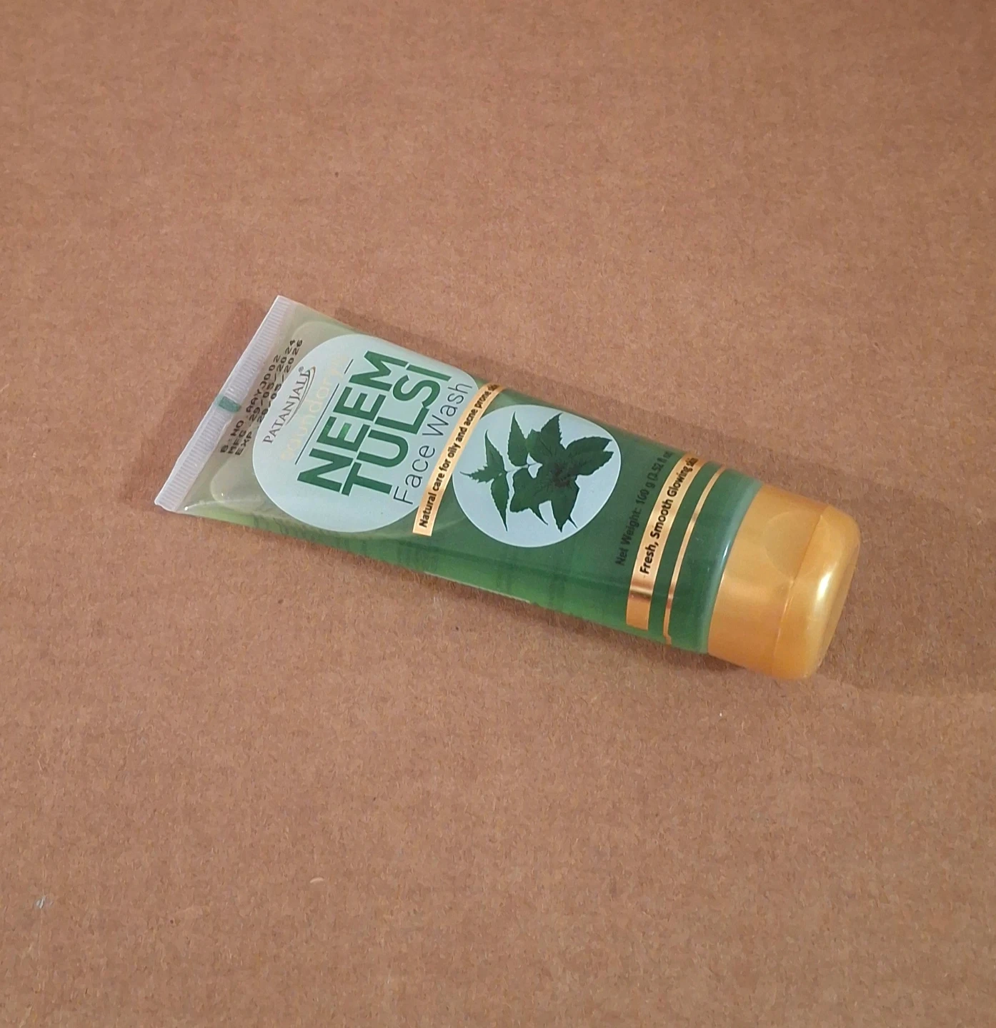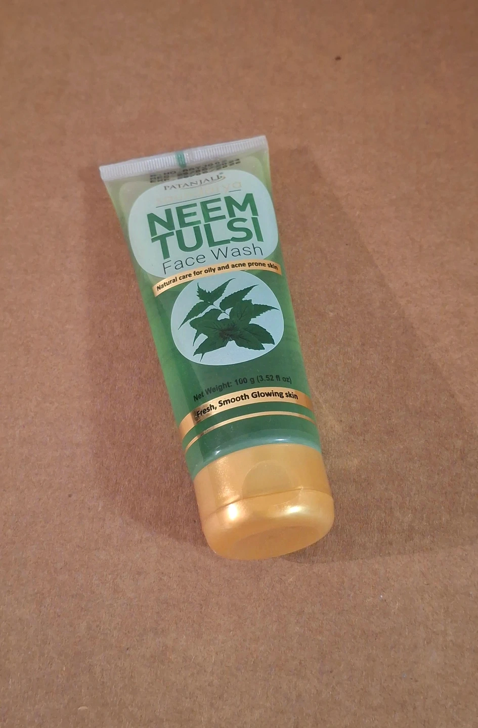 A new, unused 100g tube of Patanjali Neem Tulsi Face Wash for natural care for oily and acne prone skin. This herbal gel promotes fresh, smooth and glowing skin.
