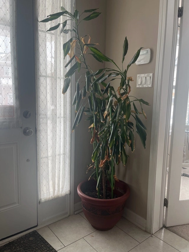 This is a used potted plant, great for adding some greenery to your space! The plant is in fair condition, with some visible wear and tear on the leaves. It's still a beautiful plant and has plenty of life left. If this ad is still up, the plant is still available and waiting to find a new home! Cash accepted.