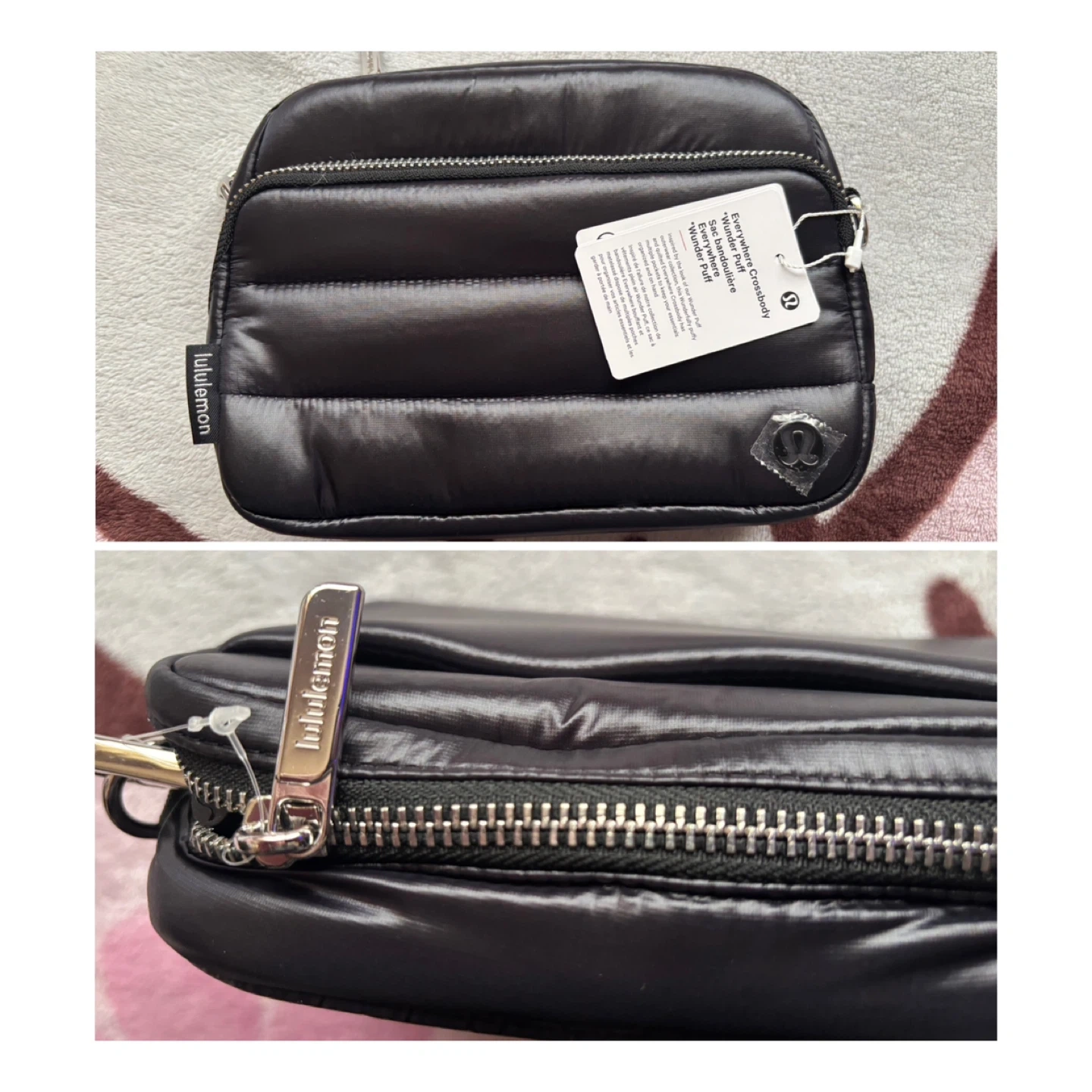 For sale is a Lululemon Everywhere Crossbody bag in "Wunder Puff" style. This quilted bag has multiple pockets to keep essentials organized. Puffy and quilted nylon material. Size 2L. Brand new.