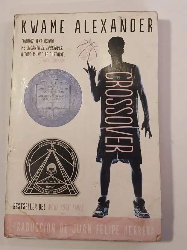This is 'The Crossover' paperback book by Kwame Alexander. It's a New York Times Bestseller and winner of multiple awards. It tells the story of twins Josh and Jordan Bell.