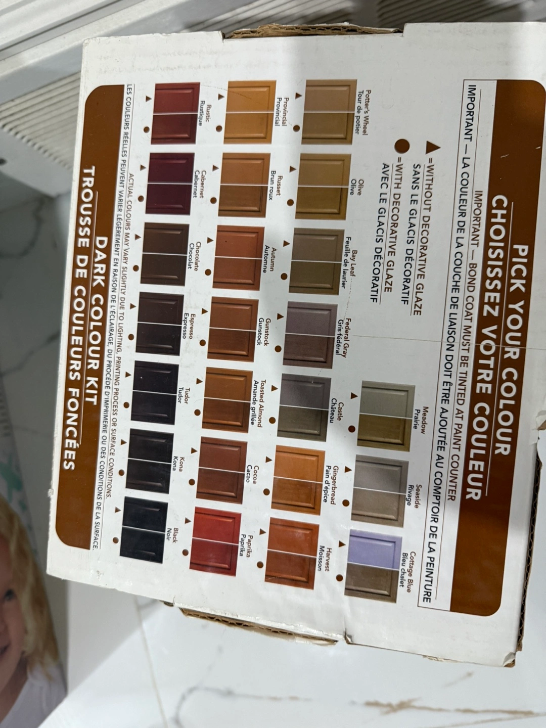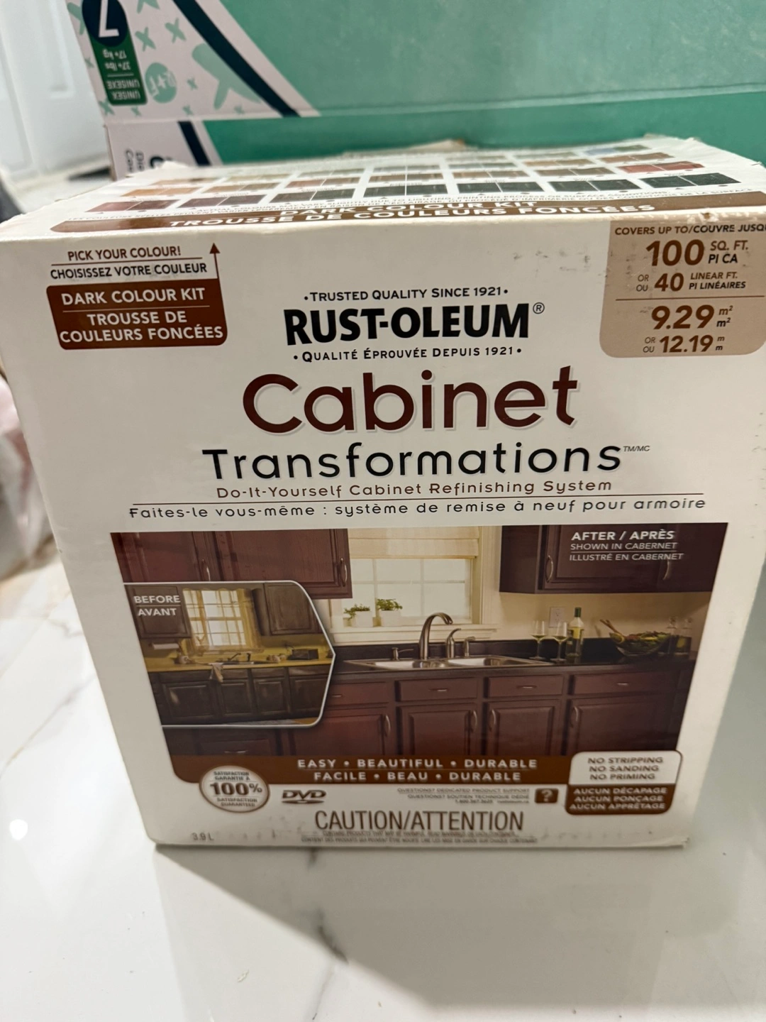 Selling a Rust-Oleum Cabinet Transformations Dark Colour Kit! This Do-It-Yourself Cabinet Refinishing System is perfect for kitchen or bathroom cabinets, furniture and more.