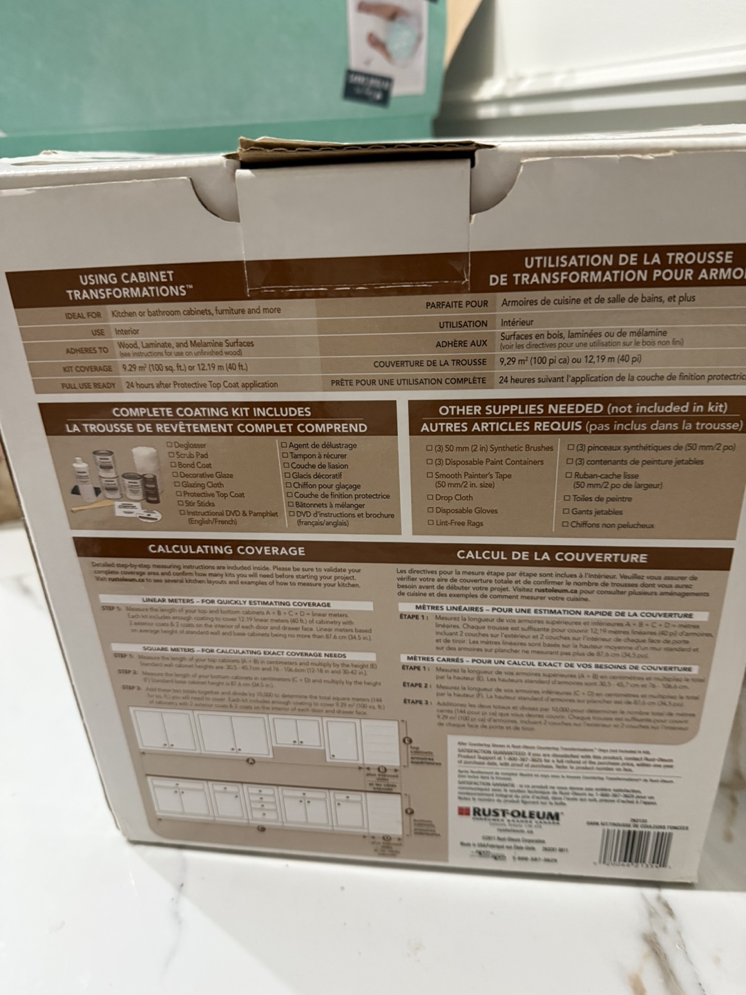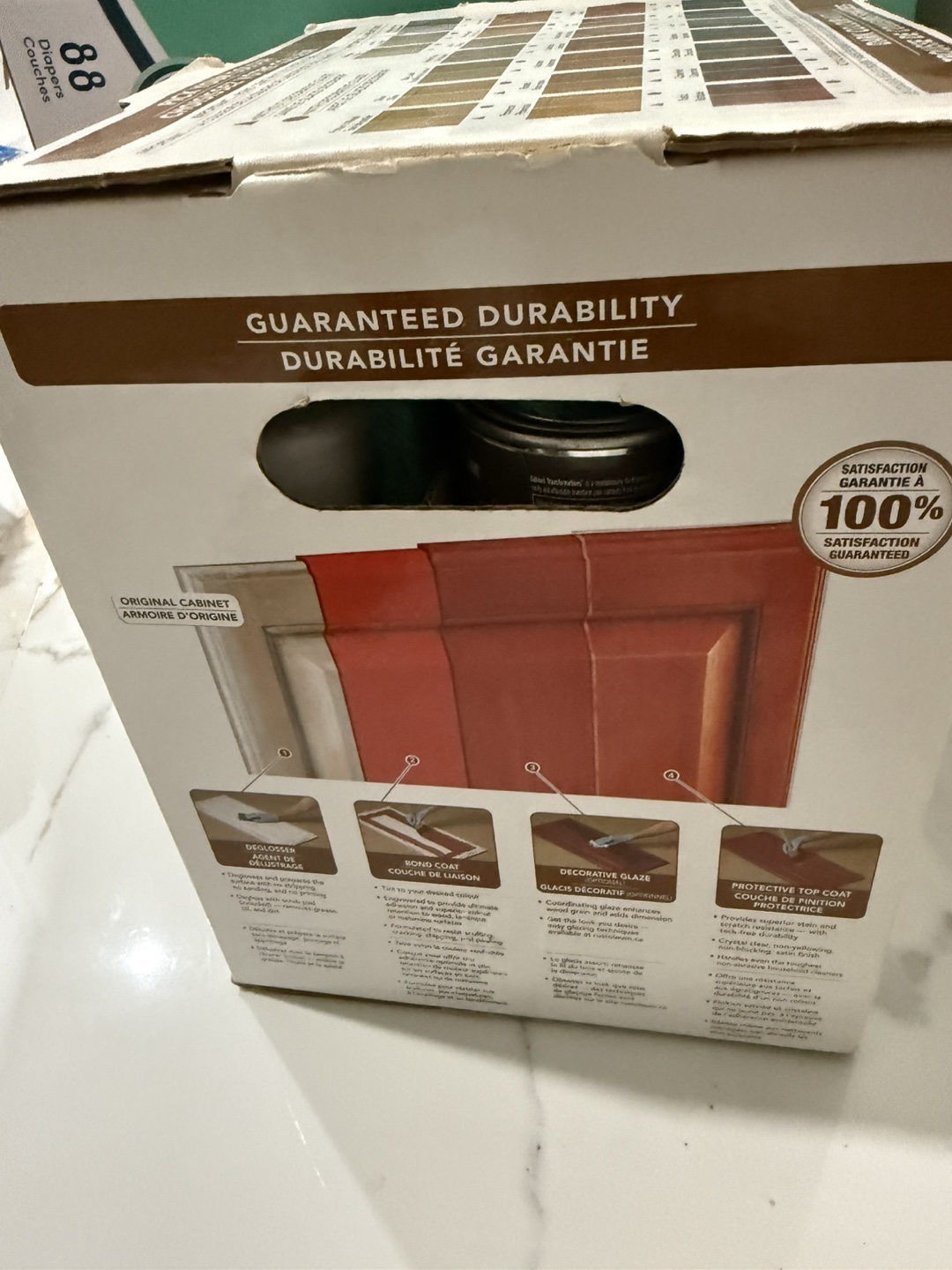 Selling a Rust-Oleum Cabinet Transformations Dark Colour Kit! This Do-It-Yourself Cabinet Refinishing System is perfect for kitchen or bathroom cabinets, furniture and more.