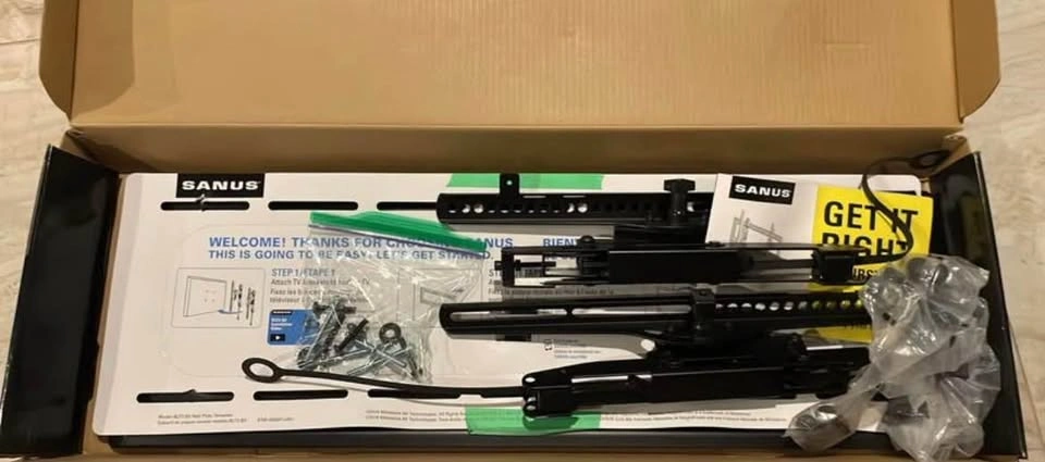 Achieve the perfect position for your television with this Sanus Advanced Tilting TV wall mount. This versatile mount supports most 42" to 90" TVs up to 68kg. You can adjust this tilting mount with no tools to the ideal viewing angle. Made from sturdy steel, it offers strong and lasting quality. Model BLT2-B3. Mint condition, used for only a few months. Comes in original box.