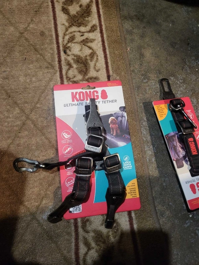 Keep your furry friend safe and secure during car rides with these KONG Ultimate and Deluxe Safety Tethers! This sturdy tether is compatible with LATCH/ISOfix systems, ensuring a snug fit for all dog sizes. They're both brand new. Ultimate Safety Tether: ISOfix, Canfix, Latch Fitting, Anti-Tangle. Deluxe Swivel Tether: Swivel, No Tangle. Price is $25 per tether. If the ad's still up, then yes, it's still available!