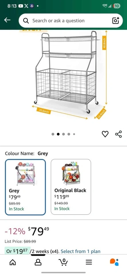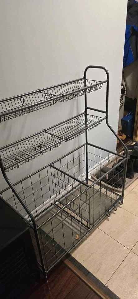 Sports equipment storage organizer can store all your indoor outdoor sports goods on one cart for truly space saving and providing easy access. Features 2 large capacity storage bins, 4 wire mesh baskets, racket/bat holders, and 3 hanging hooks.