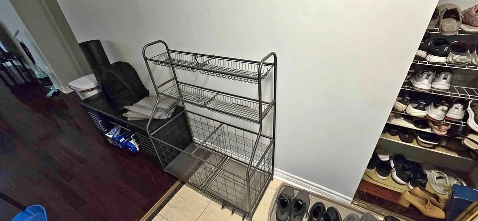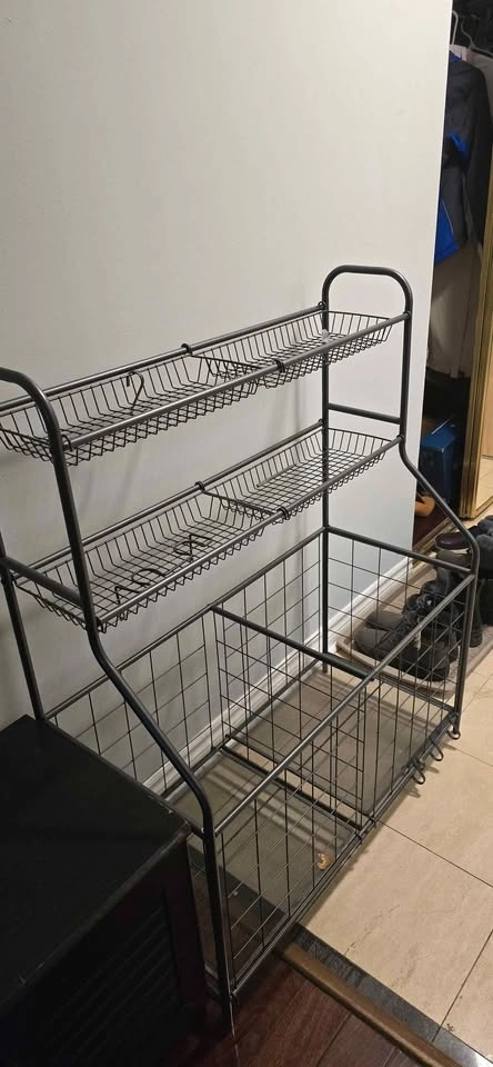 Sports equipment storage organizer can store all your indoor outdoor sports goods on one cart for truly space saving and providing easy access. Features 2 large capacity storage bins, 4 wire mesh baskets, racket/bat holders, and 3 hanging hooks.