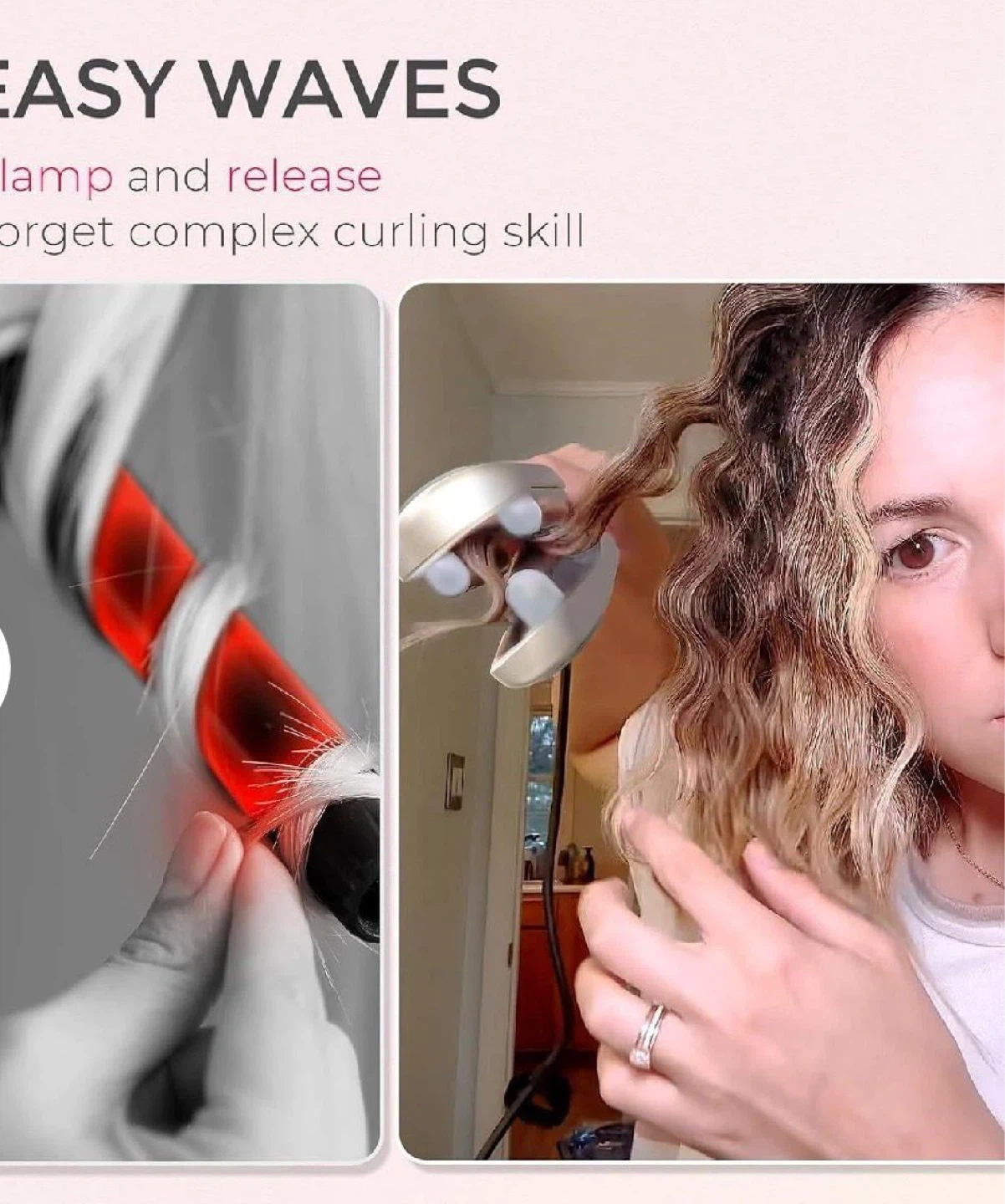Creates easy waves with a simple clamp and release design. This hair waver is designed to create beautiful waves without complex curling skills. It's perfect for achieving a stylish look quickly and effortlessly.