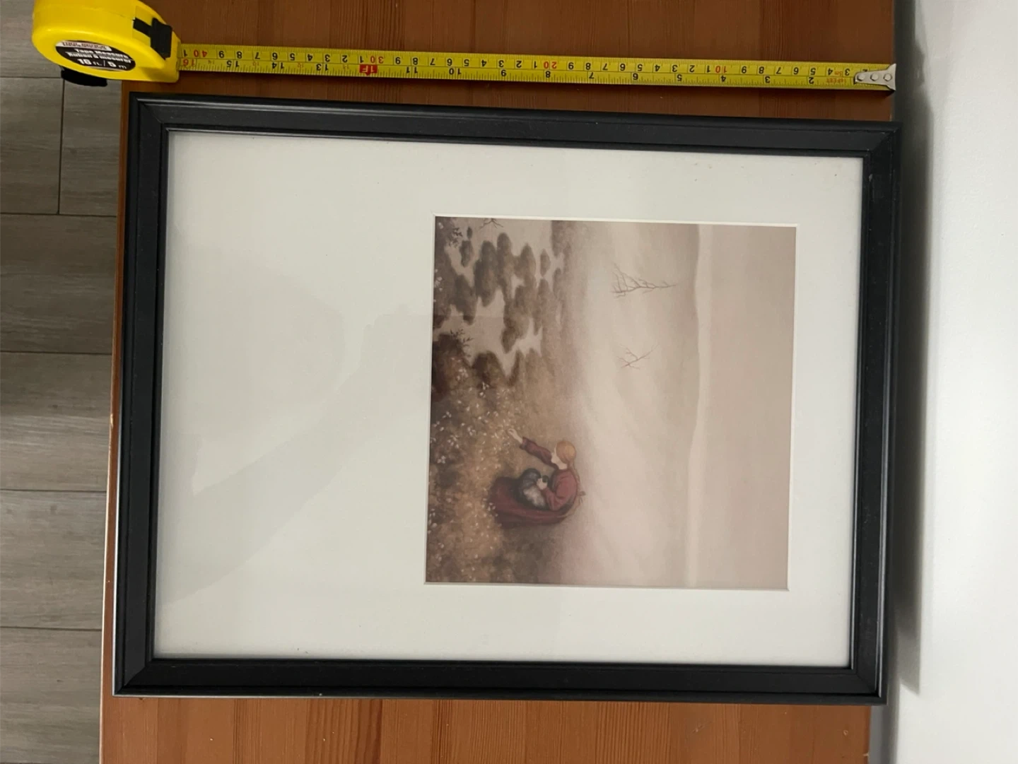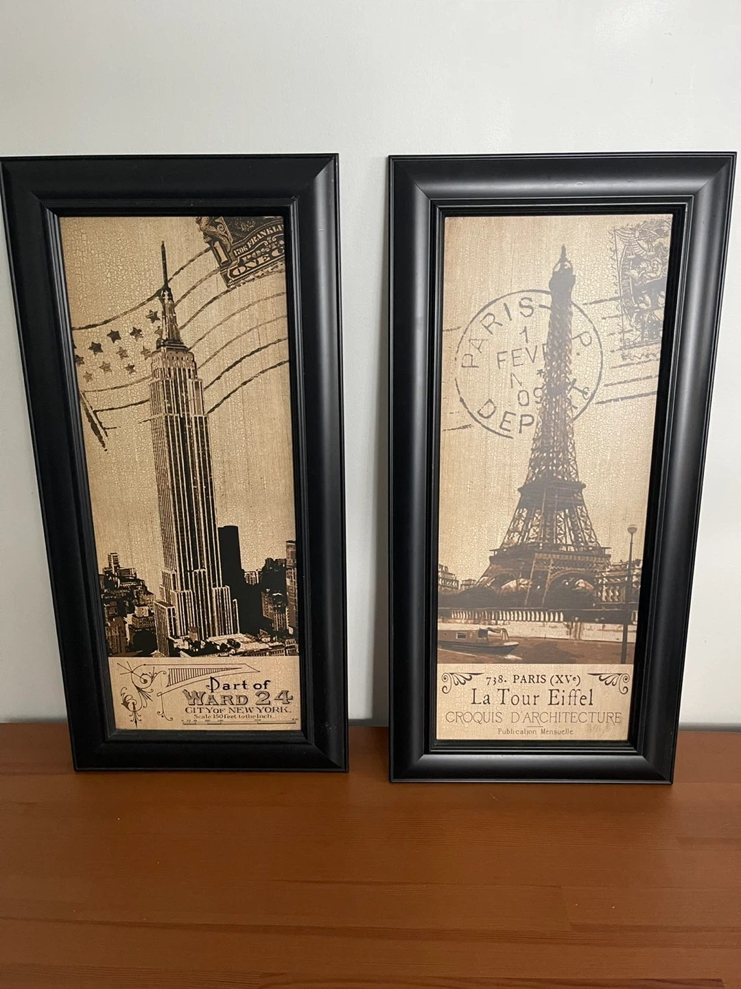 Framed watercolor artwork depicting building facades along a street. This piece measures approximately 8.5 inches by 11 inches, with the frame adding to the overall dimensions. It's a charming addition to any wall!