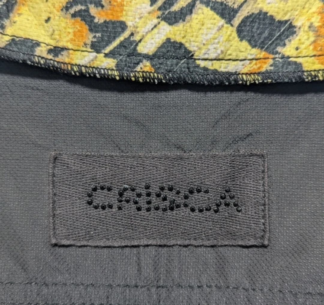Stylish CRISCA blazer jacket. Features a black base with a striking yellow and black leopard print accent on the collar and cuffs. Embellished with black faceted gems on the lapels. Zipper and button closure with pocket details.