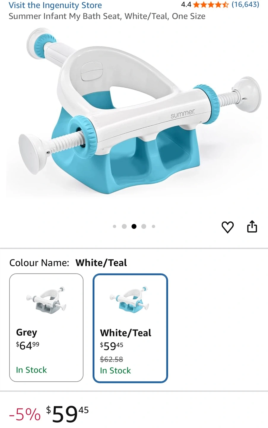 Summer Infant My Bath Seat White/Teal