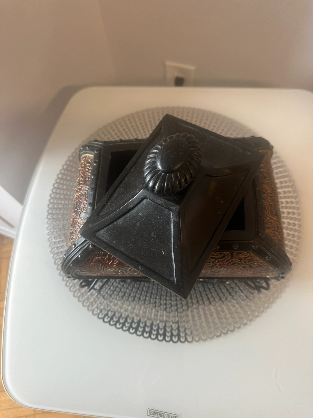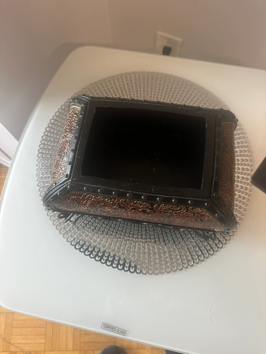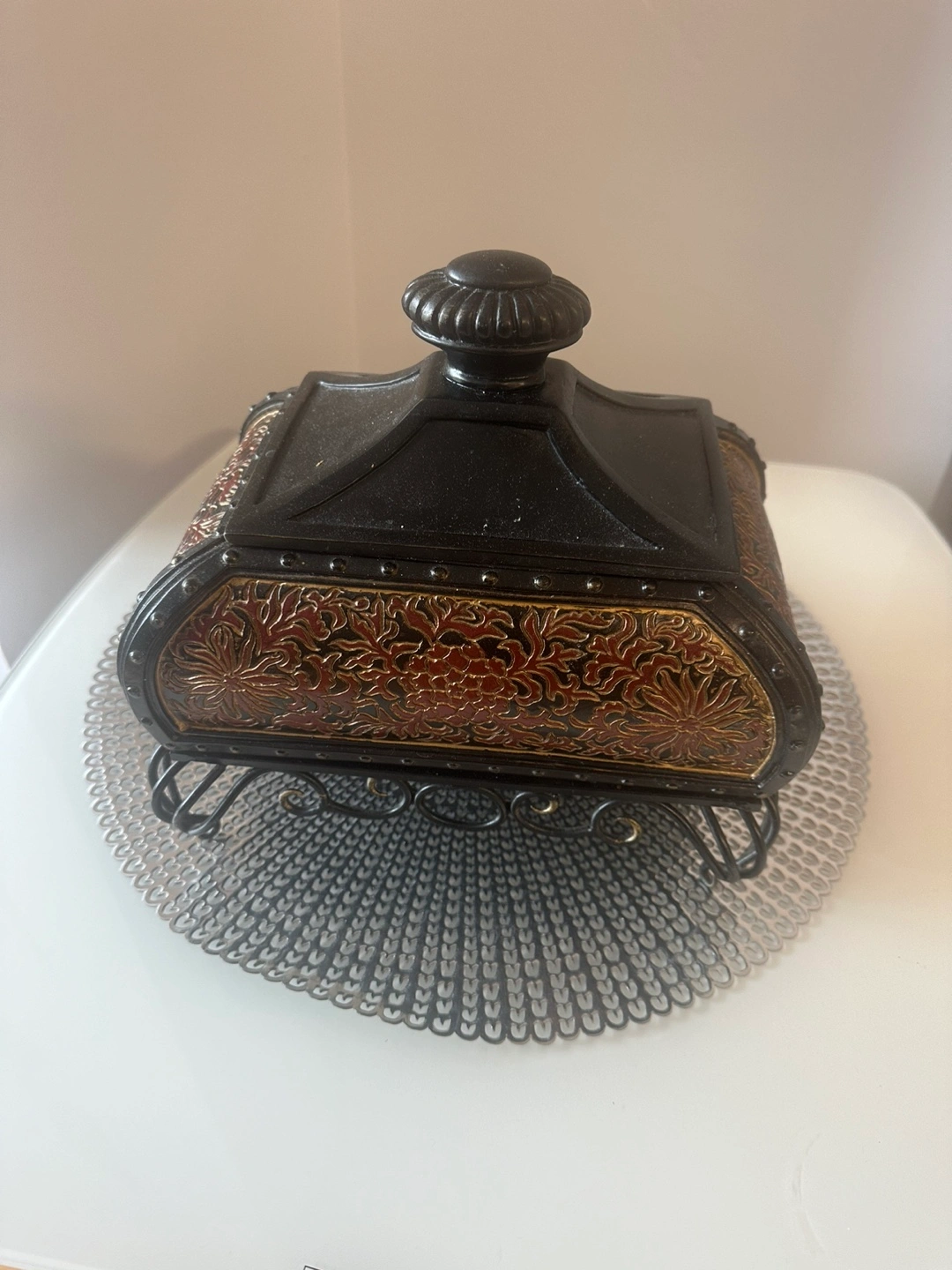 Ornate Decorative Box with Metal Stand
