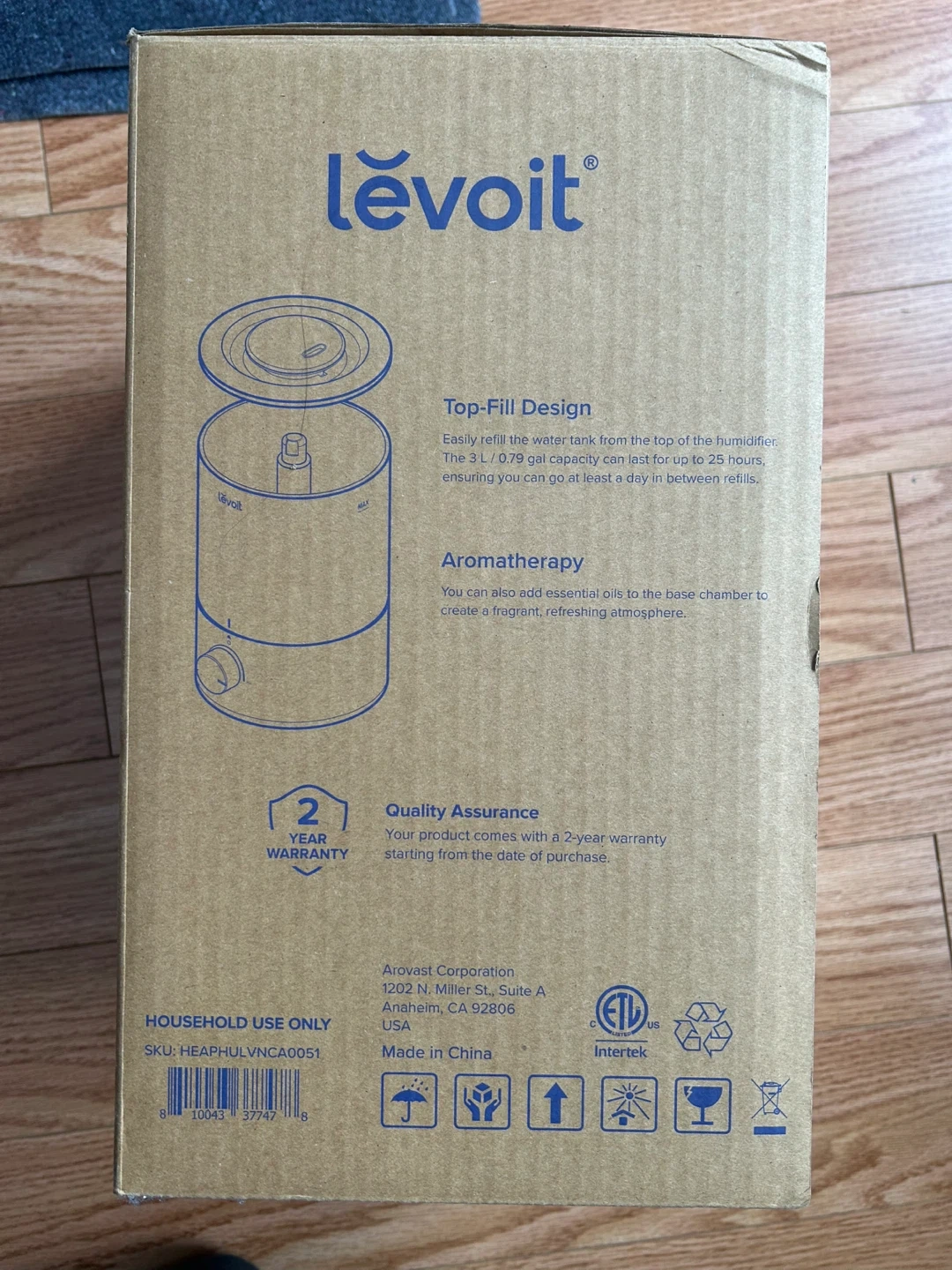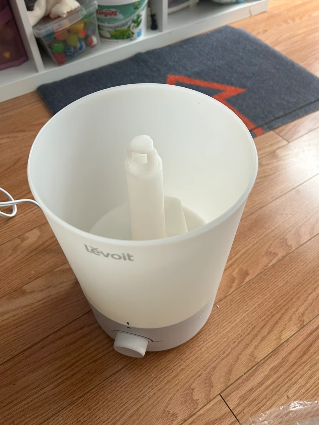 This Levoit Dual 150 Ultrasonic Cool Mist Humidifier comes in white. It features a top-fill design and dual valve anti-leak design for quiet operation. Package includes the humidifier, 2x water filter sponge, 1x cleaning brush, and 1x power adapter.