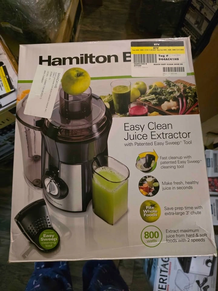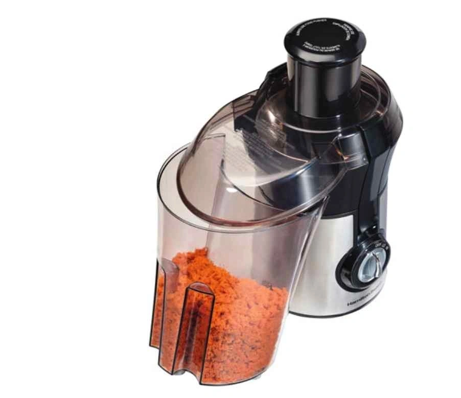 Fill your glass with nutritious juice with the Hamilton Beach Easy Clean juice extractor. Its extra-large feed chute handles whole fruits and vegetables with ease, minimizing prep time, and its generous pulp bin allows for lengthy juicing sessions. It comes with an Easy Sweep cleaning tool and has dishwasher-safe parts for effortless maintenance.